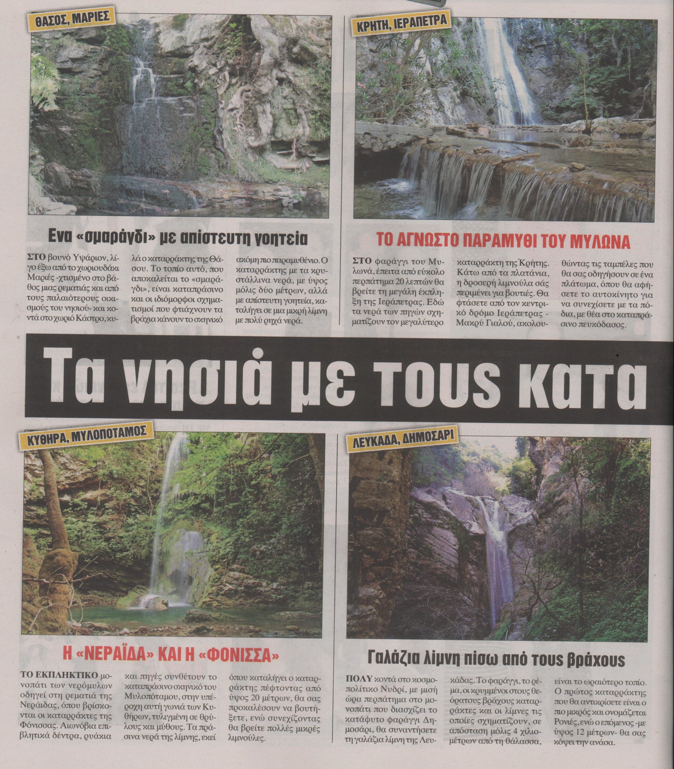 Δεν υπάρχει ελληνικό νησί που να μην διαθέτει υπέροχες παραλίες για αξέχαστε βουτιές. Υπάρχουν, όμως και κάποια – πιο προνομοιούχα – που προσφέρουν κάτι ακόμα: Την ευκαιρία για κολύμπι σε κρυστάλλινα νερά μέσα σε λίμνες που δημιουργούνται από μαγευτικούς καταρράκτες.