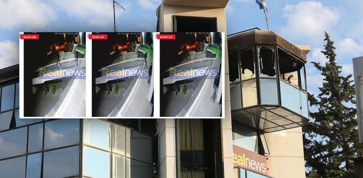 03:01:28 Λίγο μετά τις 3 τα ξημερώματα, οι κάμερες του κτιριακού συγκροτήματος όπου στεγάζεται το Real Group καταγράφουν τους δύο δράστες να προσεγγίζουν το κτίριο, από την οδό Αριστοτέλους, κάθετη της λεωφόρου Κηφισίας. Στιγμές αργότερα, με ταχύ βηματισμό, βρίσκονται πάνω στη γέφυρα που ενώνει το πεζοδρόμιο με το κτίριο. Και οι δύο φορούν μάσκες full face. Ο προπορευόμενος φαίνεται εξοικειωμένος με τον χώρο. Πλησιάζοντας το σημείο όπου βρίσκεται η κάμερα, σκύβει το κεφάλι του, ώστε να μην είναι ορατό κανένα από τα χαρακτηριστικά του. Κάνει νόημα και στον άλλον άνδρα να καλυφθεί. Ο δεύτερος κρατά μια χάρτινη σακούλα, από γνωστό ζαχαροπλαστείο που βρίσκεται στη λεωφόρο Κηφισίας.