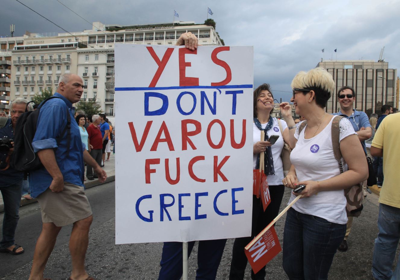 Κρατώντας πανό με συνθήματα υπέρ του “ναι” στο δημοψήφισμα της Κυριακής και σημαίες της Ευρωπαϊκής Ένωσης, πλήθος κόσμου διαδηλώνει αυτήν την ώρα στο Σύνταγμα, στη συγκέντρωση “Μένουμε Ευρώπη”.