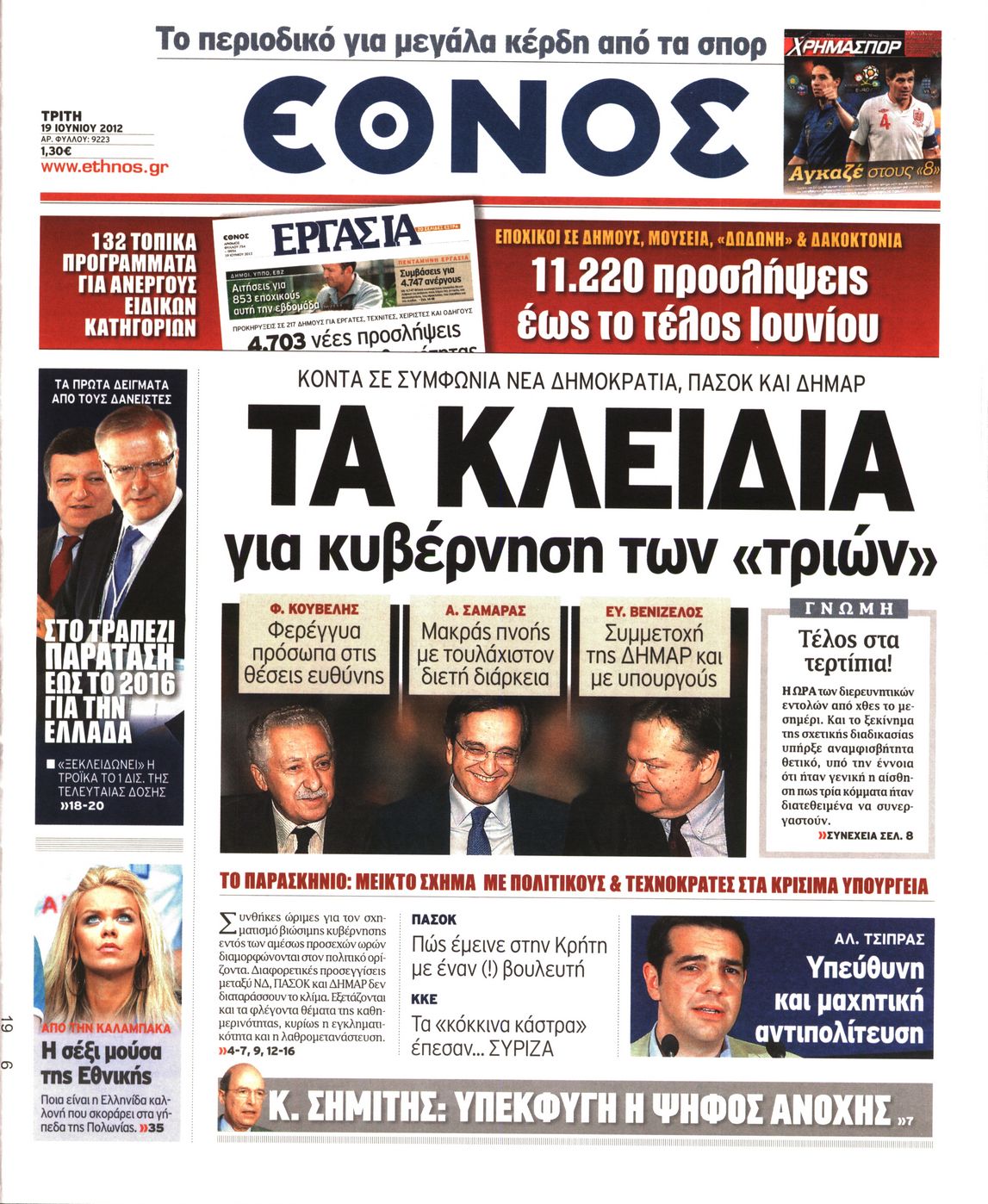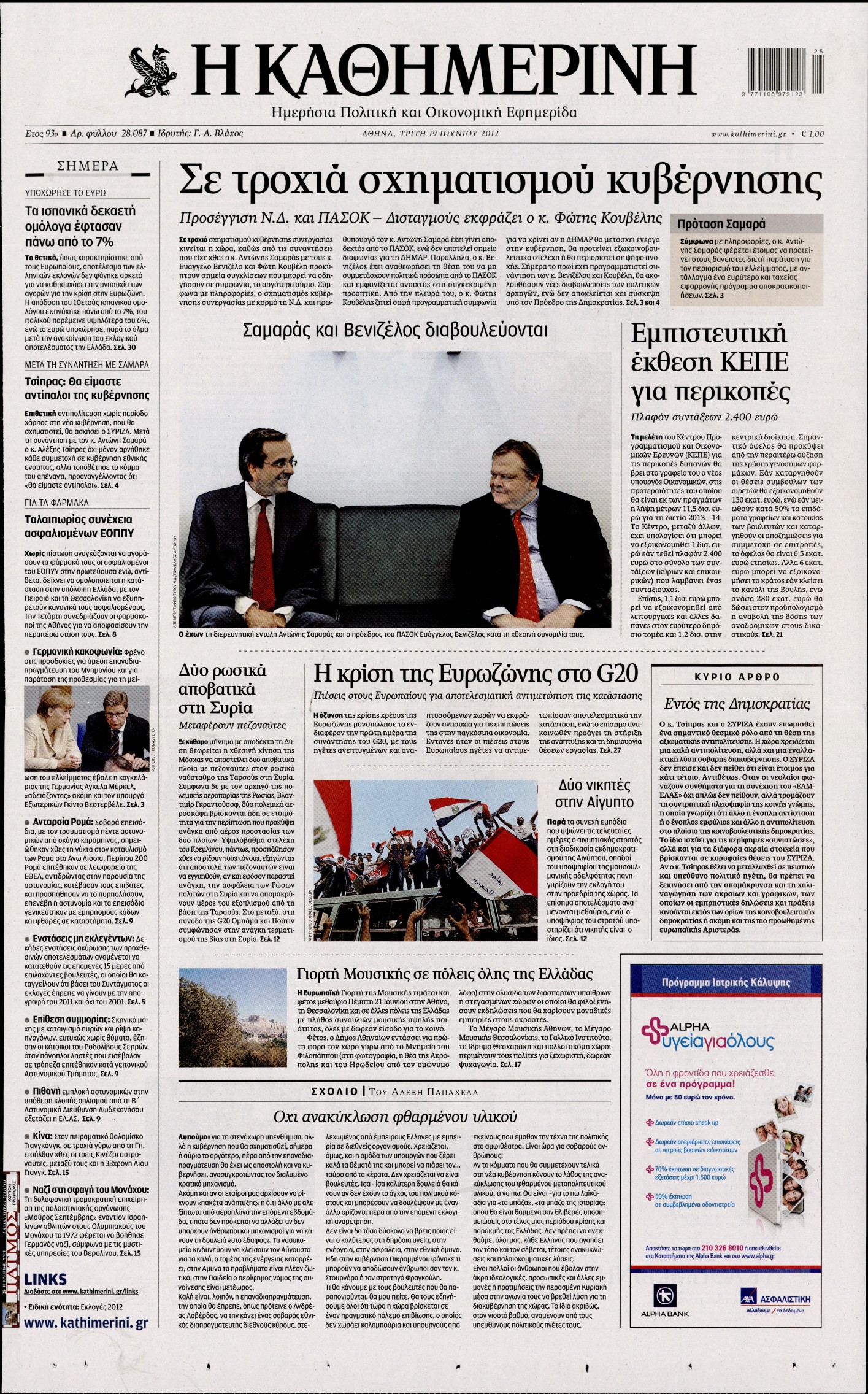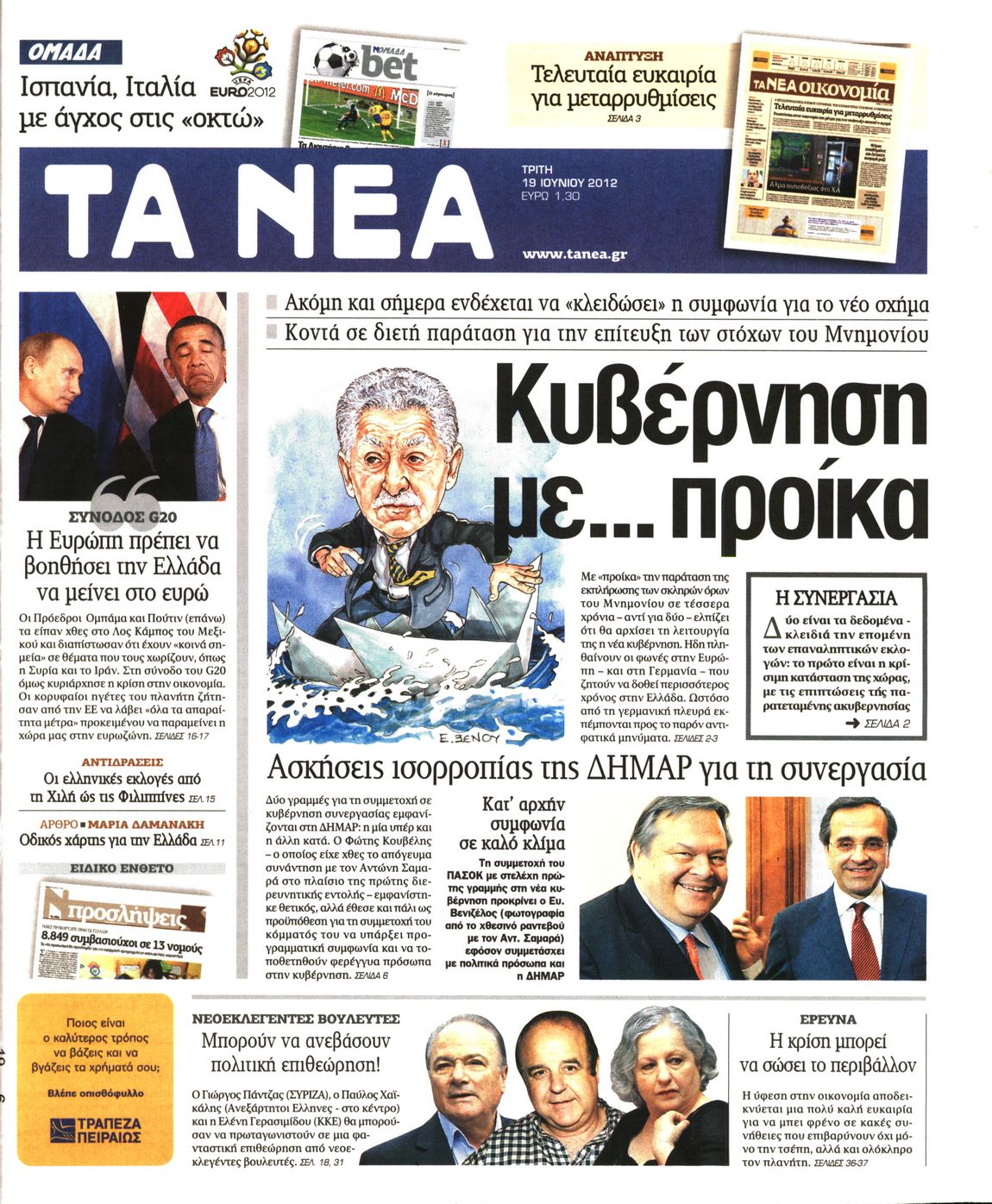Τα πρωτοσέλιδα των εφημερίδων Enikos Newsroom 07:28, Τρίτη 19 Ιουνίου 2012 κοινωνία ΕΦΗΜΕΡΙΔΕΣ ΠΡΩΤΟΣΕΛΙΔΑ Μοιράσου το: σχολίασε κι εσύ (0 σχόλια) Ακολουθήστε το enikos.gr στο Google News και μάθετε πρώτοι όλες τις ειδήσεις Δείτε όλες τις τελευταίες ειδήσεις από την Ελλάδα και τον Κόσμο στο enikos.gr Ειδήσεις Ροή Ειδήσεων 2 λεπτά πριν Συντάξεις: Οι κερδισμένοι και οι χαμένοι από τις αυξήσεις – Αναλυτικός οδηγός και παραδείγματα 3 ώρες πριν Ευρωπαϊκή Ένωση: Συμφωνία για δάνειο 90 δισ. ευρώ στην Ουκρανία τη διετία 2026-2027 22 λεπτά πριν Θανατηφόρο τροχαίο στη Νέα Φιλαδέλφεια: Νεκρός 27χρονος οδηγός μηχανής ύστερα από σύγκρουση με τρόλεϊ 3 ώρες πριν Κυριάκος Μητσοτάκης: «Κάποιοι αγρότες δεν αισθάνονται την ανάγκη να διαφωνήσουν με τις προτάσεις της κυβέρνησης, η Ευρώπη στέκεται στο πλευρό της Ουκρανίας» 8 ώρες πριν ΟΠΕΚΕΠΕ: Προφυλακιστέος ο φερόμενος αρχηγός και ο λογιστής της εγκληματικής οργάνωσης 1 ώρα πριν Οπτική ψευδαίσθηση: Μόνο αν έχεις αετίσια ματιά θα βρεις τον παπαγάλο σε 12 δευτερόλεπτα 1 ώρα πριν Κρύα χέρια και πόδια: Γιατρός εξηγεί ποια είναι η αίτια και πότε πρέπει να ανησυχήσετε 2 ώρες πριν Τα ζώδια σήμερα, Παρασκευή 19 Δεκεμβρίου: Τοξότες, με τη Νέα Σελήνη έρχεται η προσωπική ανανέωσή σας 2 ημέρες πριν 20 χρόνια τα Χριστούγεννα ξεκινούν στα Public με μεγάλη ποικιλία σε δώρα! 2 λεπτά πριν Συντάξεις: Οι κερδισμένοι και οι χαμένοι από τις αυξήσεις – Αναλυτικός οδηγός και παραδείγματα 5 λεπτά πριν Οι αθλητικές μεταδόσεις 19/12/2025 13 λεπτά πριν Εορτολόγιο: Ποιοι γιορτάζουν σήμερα 19 Δεκεμβρίου 22 λεπτά πριν Θανατηφόρο τροχαίο στη Νέα Φιλαδέλφεια: Νεκρός 27χρονος οδηγός μηχανής ύστερα από σύγκρουση με τρόλεϊ 29 λεπτά πριν ΔΕΔΔΗΕ: Διακοπές ρεύματος σήμερα (19/12) στην Αθήνα και σε άλλες 12 περιοχές της Αττικής ENIKOS NETWORK Μόνο όσοι σκανάρουν με ταχύτητα ΑΙ μπορούν να εντοπίσουν τον διαφορετικό αριθμό ανάμεσα στο πλέγμα των 68 και να λύσουν το ... Η τροφή του πόθου που μπορεί να ανακουφίσει από ενοχλήσεις στο στομάχι και από τα συμπτώματα του Raynaud Συντάξεις: Οι κερδισμένοι και οι χαμένοι από τις αυξήσεις – Αναλυτικός οδηγός Στεγαστικό: Τι λέει η ΠΟΜΙΔΑ για τα νέα μέτρα που ανακοίνωσε ο Κυριάκος Μητσοτάκης Χαρτογραφώντας το «σημείο χωρίς επιστροφή»: Για πρώτη φορά αποκαλύπτεται με λεπτομέρεια το ακανθώδες όριο της ατμόσφαιρας τ... Η Google καταργεί τη λειτουργία «dark web report» – Πώς θα μπορούν οι χρήστες να διαγράφουν τα δεδομένα τους περισσότερα 07:10 , Παρασκευή 19 Δεκεμβρίου 2025 Εορτολόγιο: Ποιοι γιορτάζουν σήμερα 19 Δεκεμβρίου Παρασκευή 19 Δεκεμβρίου σήμερα και σύμφωνα με το εορτολόγιο γιορτάζουν όσοι φέρουν το όνομα: Α... 07:01 , Παρασκευή 19 Δεκεμβρίου 2025 Θανατηφόρο τροχαίο στη Νέα Φιλαδέλφεια: Νεκρός 27χρονος οδηγός μηχανής ύστερα από σύγκρουση με τρόλεϊ Ένα νέο θανατηφόρο τροχαίο σημειώθηκε τα ξημερώματα της Παρασκευής στην Νέα Φιλαδέλφεια όταν έ... 06:08 , Παρασκευή 19 Δεκεμβρίου 2025 Αθήνα: Βρέθηκε η 16χρονη που είχε εξαφανιστεί από τις 6 Δεκεμβρίου – Η ανακοίνωση από το «Χαμόγελο του Παιδιού» Αίσιο τέλος είχε η περιπέτεια της Νάγκλα Αλαμίν, ηλικίας 16 ετών, η οποία είχε εξαφανιστεί στι... 05:22 , Παρασκευή 19 Δεκεμβρίου 2025 Εφημερεύοντα φαρμακεία σε Αθήνα και Θεσσαλονίκη (19/12) Μάθετε ποια φαρμακεία εφημερεύουν σε Αθήνα και Θεσσαλονίκη. Βρείτε εύκολα και γρήγορα τα πλησι... ΤΕΛΕΥΤΑΙΕΣ ΕΙΔΗΣΕΙΣ 5 λεπτά πριν Οι αθλητικές μεταδόσεις 19/12/2025 13 λεπτά πριν Εορτολόγιο: Ποιοι γιορτάζουν σήμερα 19 Δεκεμβρίου 22 λεπτά πρ