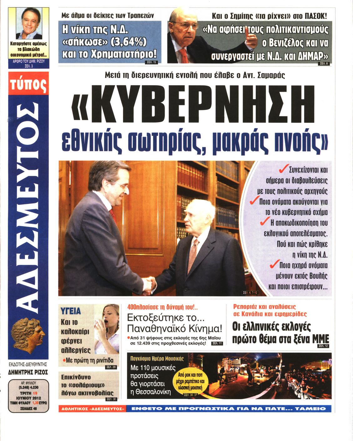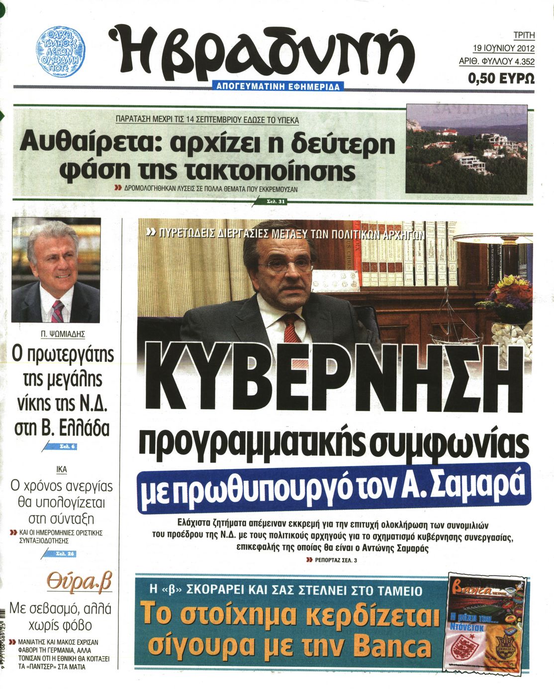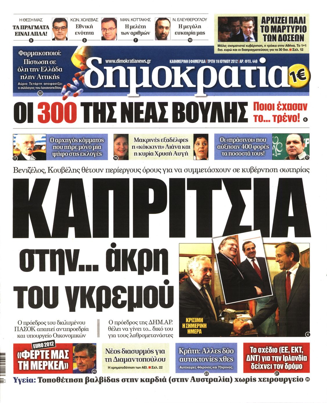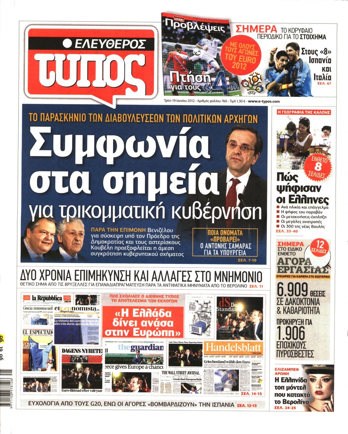 Τα πρωτοσέλιδα των εφημερίδων Enikos Newsroom 07:28, Τρίτη 19 Ιουνίου 2012 κοινωνία ΕΦΗΜΕΡΙΔΕΣ ΠΡΩΤΟΣΕΛΙΔΑ Μοιράσου το: σχολίασε κι εσύ (0 σχόλια) Ακολουθήστε το enikos.gr στο Google News και μάθετε πρώτοι όλες τις ειδήσεις Δείτε όλες τις τελευταίες ειδήσεις από την Ελλάδα και τον Κόσμο στο enikos.gr Ειδήσεις Ροή Ειδήσεων 2 λεπτά πριν Συντάξεις: Οι κερδισμένοι και οι χαμένοι από τις αυξήσεις – Αναλυτικός οδηγός και παραδείγματα 3 ώρες πριν Ευρωπαϊκή Ένωση: Συμφωνία για δάνειο 90 δισ. ευρώ στην Ουκρανία τη διετία 2026-2027 22 λεπτά πριν Θανατηφόρο τροχαίο στη Νέα Φιλαδέλφεια: Νεκρός 27χρονος οδηγός μηχανής ύστερα από σύγκρουση με τρόλεϊ 3 ώρες πριν Κυριάκος Μητσοτάκης: «Κάποιοι αγρότες δεν αισθάνονται την ανάγκη να διαφωνήσουν με τις προτάσεις της κυβέρνησης, η Ευρώπη στέκεται στο πλευρό της Ουκρανίας» 8 ώρες πριν ΟΠΕΚΕΠΕ: Προφυλακιστέος ο φερόμενος αρχηγός και ο λογιστής της εγκληματικής οργάνωσης 1 ώρα πριν Οπτική ψευδαίσθηση: Μόνο αν έχεις αετίσια ματιά θα βρεις τον παπαγάλο σε 12 δευτερόλεπτα 1 ώρα πριν Κρύα χέρια και πόδια: Γιατρός εξηγεί ποια είναι η αίτια και πότε πρέπει να ανησυχήσετε 2 ώρες πριν Τα ζώδια σήμερα, Παρασκευή 19 Δεκεμβρίου: Τοξότες, με τη Νέα Σελήνη έρχεται η προσωπική ανανέωσή σας 2 ημέρες πριν 20 χρόνια τα Χριστούγεννα ξεκινούν στα Public με μεγάλη ποικιλία σε δώρα! 2 λεπτά πριν Συντάξεις: Οι κερδισμένοι και οι χαμένοι από τις αυξήσεις – Αναλυτικός οδηγός και παραδείγματα 5 λεπτά πριν Οι αθλητικές μεταδόσεις 19/12/2025 13 λεπτά πριν Εορτολόγιο: Ποιοι γιορτάζουν σήμερα 19 Δεκεμβρίου 22 λεπτά πριν Θανατηφόρο τροχαίο στη Νέα Φιλαδέλφεια: Νεκρός 27χρονος οδηγός μηχανής ύστερα από σύγκρουση με τρόλεϊ 29 λεπτά πριν ΔΕΔΔΗΕ: Διακοπές ρεύματος σήμερα (19/12) στην Αθήνα και σε άλλες 12 περιοχές της Αττικής ENIKOS NETWORK Μόνο όσοι σκανάρουν με ταχύτητα ΑΙ μπορούν να εντοπίσουν τον διαφορετικό αριθμό ανάμεσα στο πλέγμα των 68 και να λύσουν το ... Η τροφή του πόθου που μπορεί να ανακουφίσει από ενοχλήσεις στο στομάχι και από τα συμπτώματα του Raynaud Συντάξεις: Οι κερδισμένοι και οι χαμένοι από τις αυξήσεις – Αναλυτικός οδηγός Στεγαστικό: Τι λέει η ΠΟΜΙΔΑ για τα νέα μέτρα που ανακοίνωσε ο Κυριάκος Μητσοτάκης Χαρτογραφώντας το «σημείο χωρίς επιστροφή»: Για πρώτη φορά αποκαλύπτεται με λεπτομέρεια το ακανθώδες όριο της ατμόσφαιρας τ... Η Google καταργεί τη λειτουργία «dark web report» – Πώς θα μπορούν οι χρήστες να διαγράφουν τα δεδομένα τους περισσότερα 07:10 , Παρασκευή 19 Δεκεμβρίου 2025 Εορτολόγιο: Ποιοι γιορτάζουν σήμερα 19 Δεκεμβρίου Παρασκευή 19 Δεκεμβρίου σήμερα και σύμφωνα με το εορτολόγιο γιορτάζουν όσοι φέρουν το όνομα: Α... 07:01 , Παρασκευή 19 Δεκεμβρίου 2025 Θανατηφόρο τροχαίο στη Νέα Φιλαδέλφεια: Νεκρός 27χρονος οδηγός μηχανής ύστερα από σύγκρουση με τρόλεϊ Ένα νέο θανατηφόρο τροχαίο σημειώθηκε τα ξημερώματα της Παρασκευής στην Νέα Φιλαδέλφεια όταν έ... 06:08 , Παρασκευή 19 Δεκεμβρίου 2025 Αθήνα: Βρέθηκε η 16χρονη που είχε εξαφανιστεί από τις 6 Δεκεμβρίου – Η ανακοίνωση από το «Χαμόγελο του Παιδιού» Αίσιο τέλος είχε η περιπέτεια της Νάγκλα Αλαμίν, ηλικίας 16 ετών, η οποία είχε εξαφανιστεί στι... 05:22 , Παρασκευή 19 Δεκεμβρίου 2025 Εφημερεύοντα φαρμακεία σε Αθήνα και Θεσσαλονίκη (19/12) Μάθετε ποια φαρμακεία εφημερεύουν σε Αθήνα και Θεσσαλονίκη. Βρείτε εύκολα και γρήγορα τα πλησι... ΤΕΛΕΥΤΑΙΕΣ ΕΙΔΗΣΕΙΣ 5 λεπτά πριν Οι αθλητικές μεταδόσεις 19/12/2025 13 λεπτά πριν Εορτολόγιο: Ποιοι γιορτάζουν σήμερα 19 Δεκεμβρίου 22 λεπτά πρ