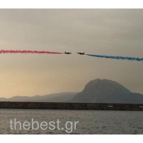 Τα Red Arrows, ξεσήκωσαν ευχάριστα το κοινό της Πάτρας και έκαναν όλους να στρέψουν το βλέμμα τους στον ουρανό. Μάλιστα η… χάρη τους έφτασε και μέχρι τη γέφυρα Ρίου Αντιρρίου πάνω από την οποία έκαναν έναν εντυπωσιακό σχηματισμό.