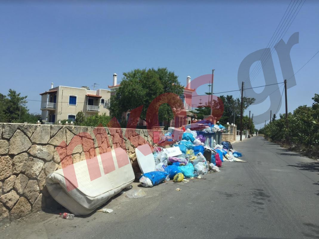 Σε φωτογραφίες που έστειλε αναγνώστης του enikos.gr, φαίνεται ότι τα σκουπίδια παραμένουν στους δρόμους του νησιού, παρότι βρισκόμαστε στην καρδιά της τουριστικής σεζόν.