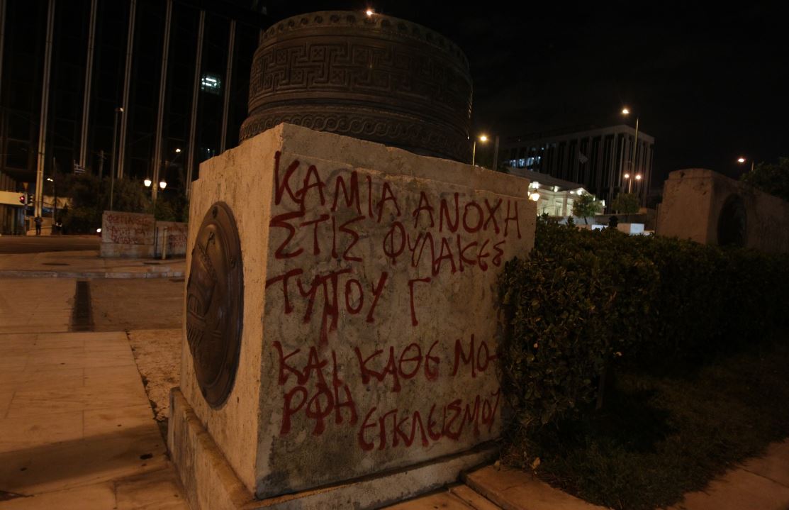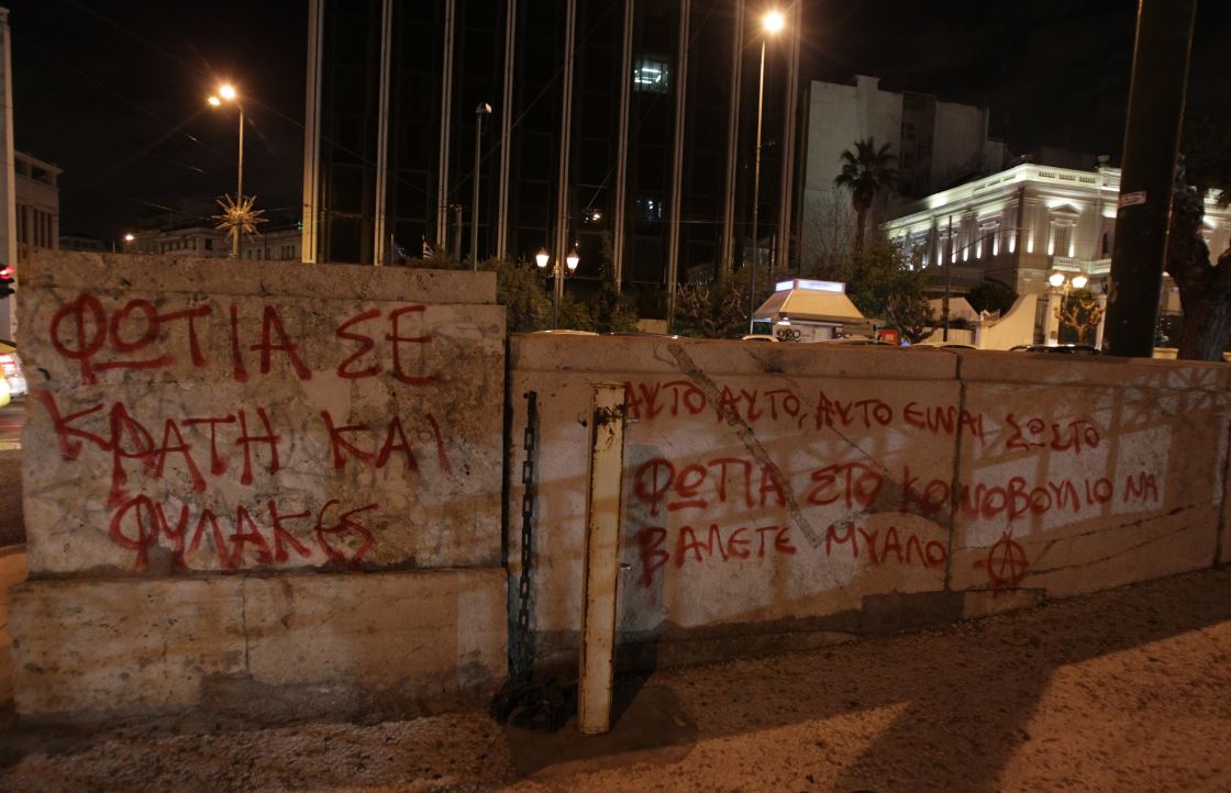 Σε εξέλιξη βρίσκονται αυτή την ώρα επεισόδια, γύρω από το Πολυτεχνείο, μεταξύ αντιεξουσιαστών και δυνάμεων των ΜΑΤ. Ωστόσο, λίγο πριν τις εννέα το βράδυ, ομάδα αγνώστων έγραψε συνθήματα με σπρέι στους τοίχους της Βούλης αλλά και στο μνημείο μπροστά από τον Άγνωστο Στρατιώτη.