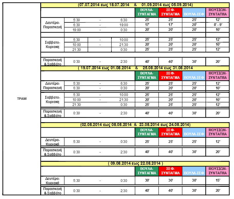 Τα θερινά δρομολόγια του Τραμ για το 2014: