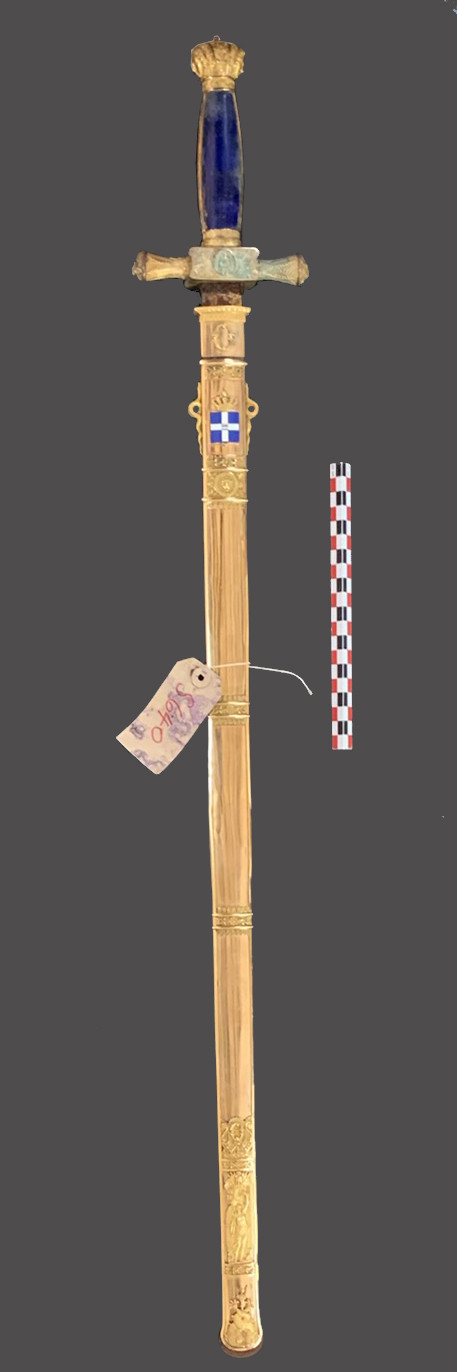 Ο Όθων, πρίγκιπας της Βαυαρίας, του οίκου των Βίττελσμπαχ, βασίλευσε στην Ελλάδα με τον τίτλο Βασιλεύς της Ελλάδος, από το 1832 έως το 1862. Το στέμμα και το σκήπτρο, κατασκευάστηκαν από το περίφημο παρισινό οίκο χρυσοχοΐας Fossin et Fils, ενώ για το ξίφος συνεργάστηκαν οι Fossin με τον ξιφοποιό Jules (;) Manceaux, του ομώνυμου οίκου οπλοποιών.