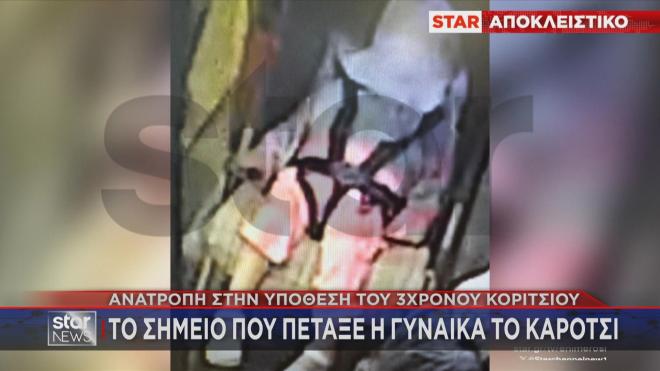 Δεύτερη κάμερα ασφαλείας καταγράφει τη σκηνή της γυναίκας με τα τρία παιδάκια λίγο νωρίτερα. Η γυναίκα την οποία αναζητούν οι αρχές φέρεται να φοράει ανοιχτό φόρεμα και να κρατάει το καφέ καρότσι. Οι εικόνες αυτές με τη γυναίκα μαζί με άλλα βίντεο που έχουν στα χέρια τους οι αρχές, πρόκειται να δώσουν απαντήσεις σχετικά με το δρομολόγιο που ακολούθησε, τόσο πριν φτάσει στο σημείο που βρέθηκε το νεκρό κοριτσάκι, όσο και μετά. Και βέβαια θα δώσουν απαντήσεις για το αν το παιδάκι που είναι στο καρότσι είναι το ίδιο κοριτσάκι που έχασε τη ζωή του.