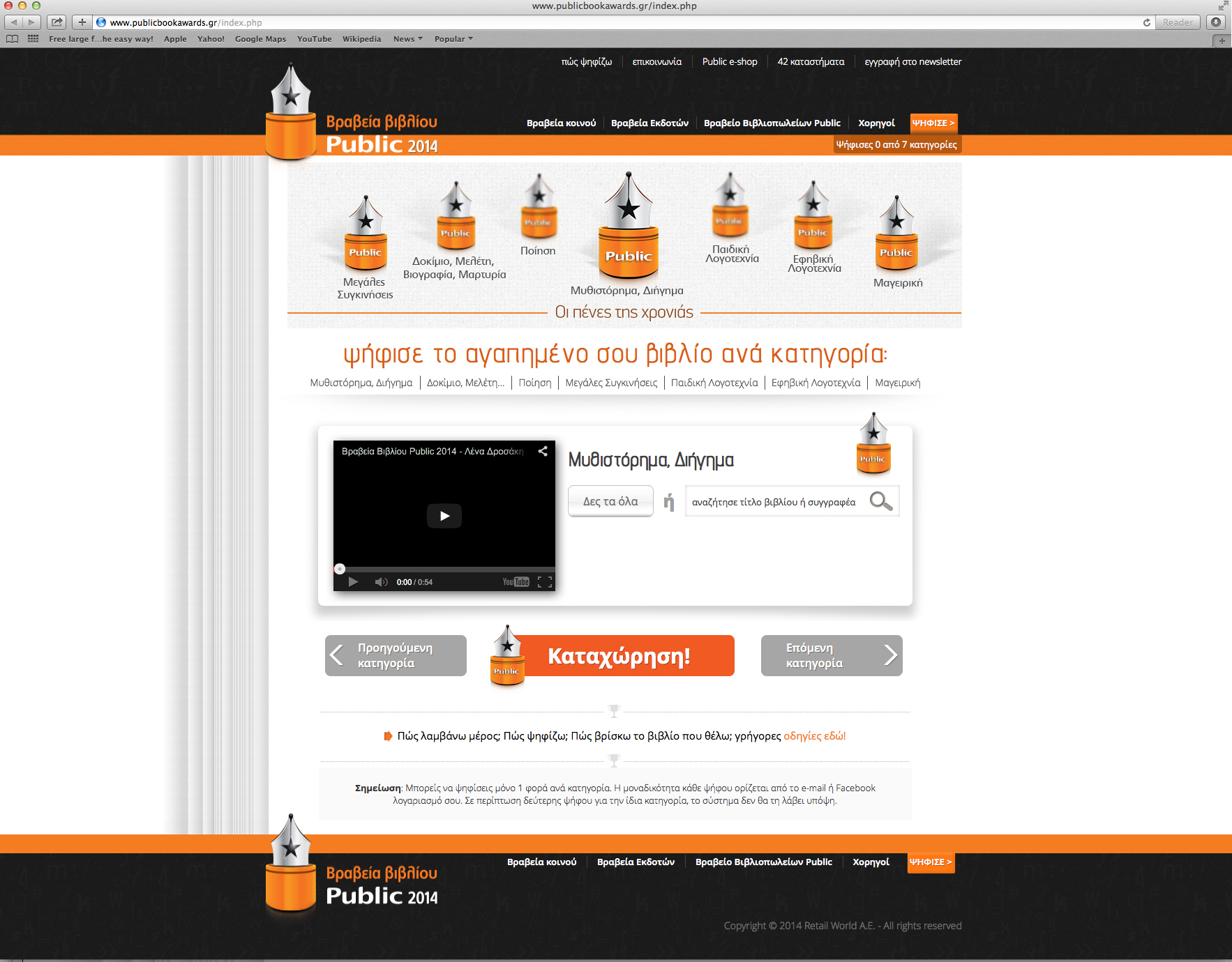 Αν θέλεις κι εσύ να αναδείξεις τα βιβλία που σου κράτησαν την καλύτερη συντροφιά τη χρονιά που πέρασε, μπες από τις 19 Μαρτίου στο www.publicbookawards.gr, αναζήτησε το αγαπημένο σου βιβλίο σε όποια κατηγορία επιθυμείς και ψήφισε το!
