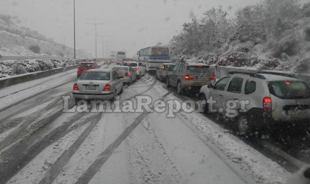 Ακινητοποιημένα εκατοντάδες ιχ στην εθνική Αθηνών – Λαμίας – ΦΩΤΟ