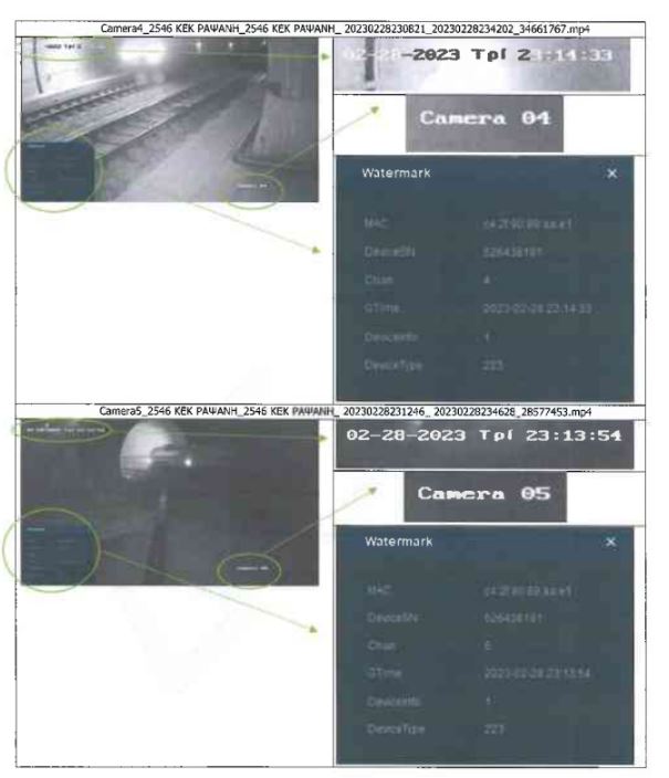Παρομοίως, για το δεύτερο βίντεο επισημαίνεται ότι «από τη συνδυαστική ανάλυση των ανωτέρω, προκύπτει ότι το εν λόγω αρχείο αποτελεί ακριβές αντίγραφο (γνήσιο) αρχείου βίντεο που προέρχεται από την κάμερα 04 που ήταν συνδεδεμένη με το καταγραφικό με ονομασία «2546 ΚΕΚ ΡΑΨΑΝΗ σειριακού αριθμού “526438191”, μεταφορτώθηκε μέσω του λογισμικού διαχείρισης IVMS και αφορά το χρονικό διάστημα “28-02-2023 23:08:21 έως 23:42:03».