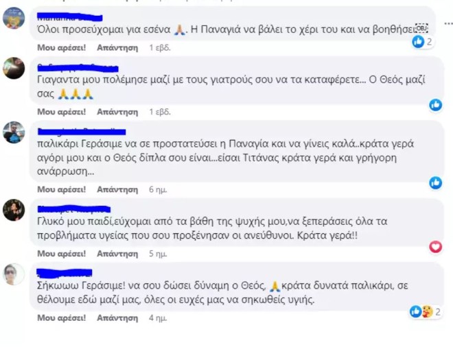 «Γίγαντά μου πολέμησε μαζί με τους γιατρούς σου να τα καταφέρετε. Ο Θεός μαζί σας», έγραψε ένας από αυτούς.