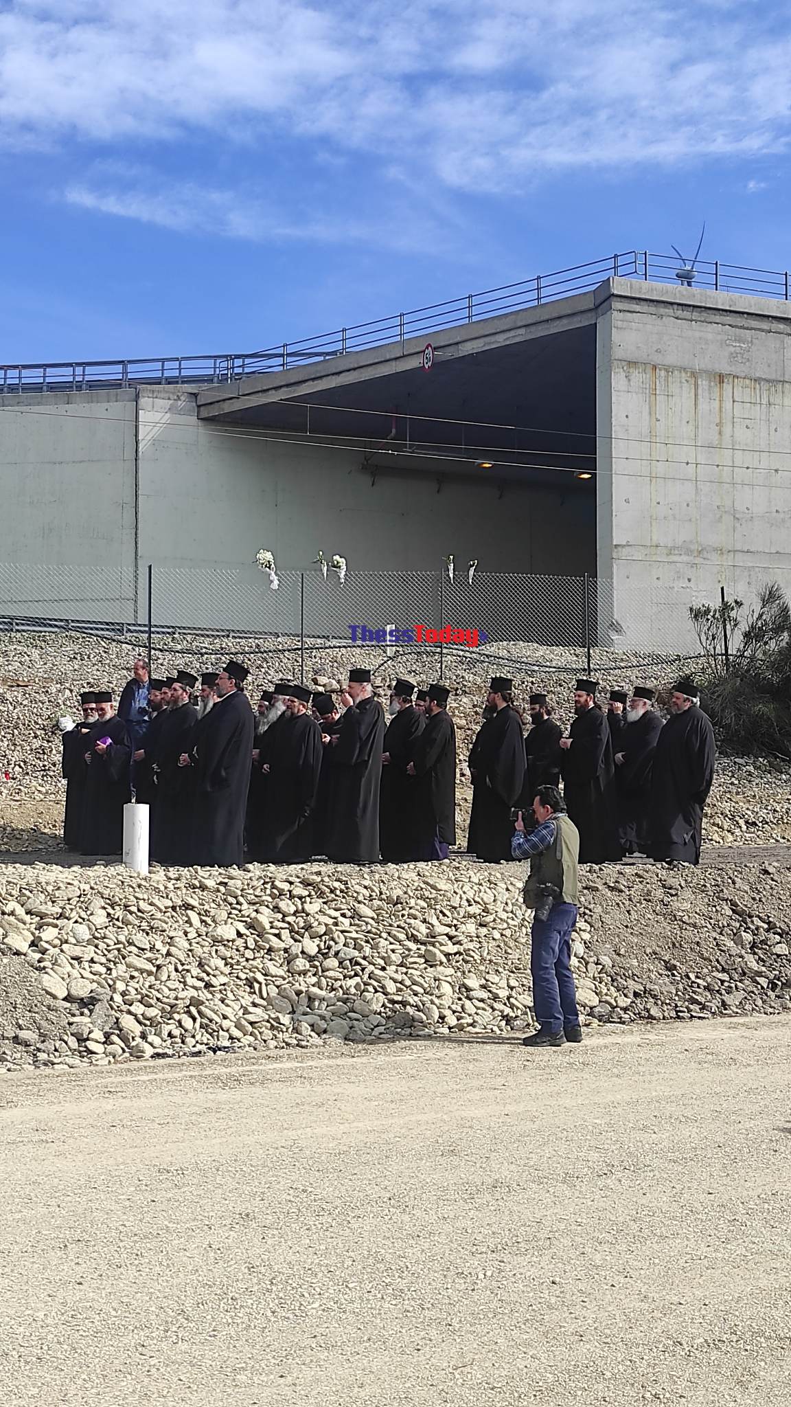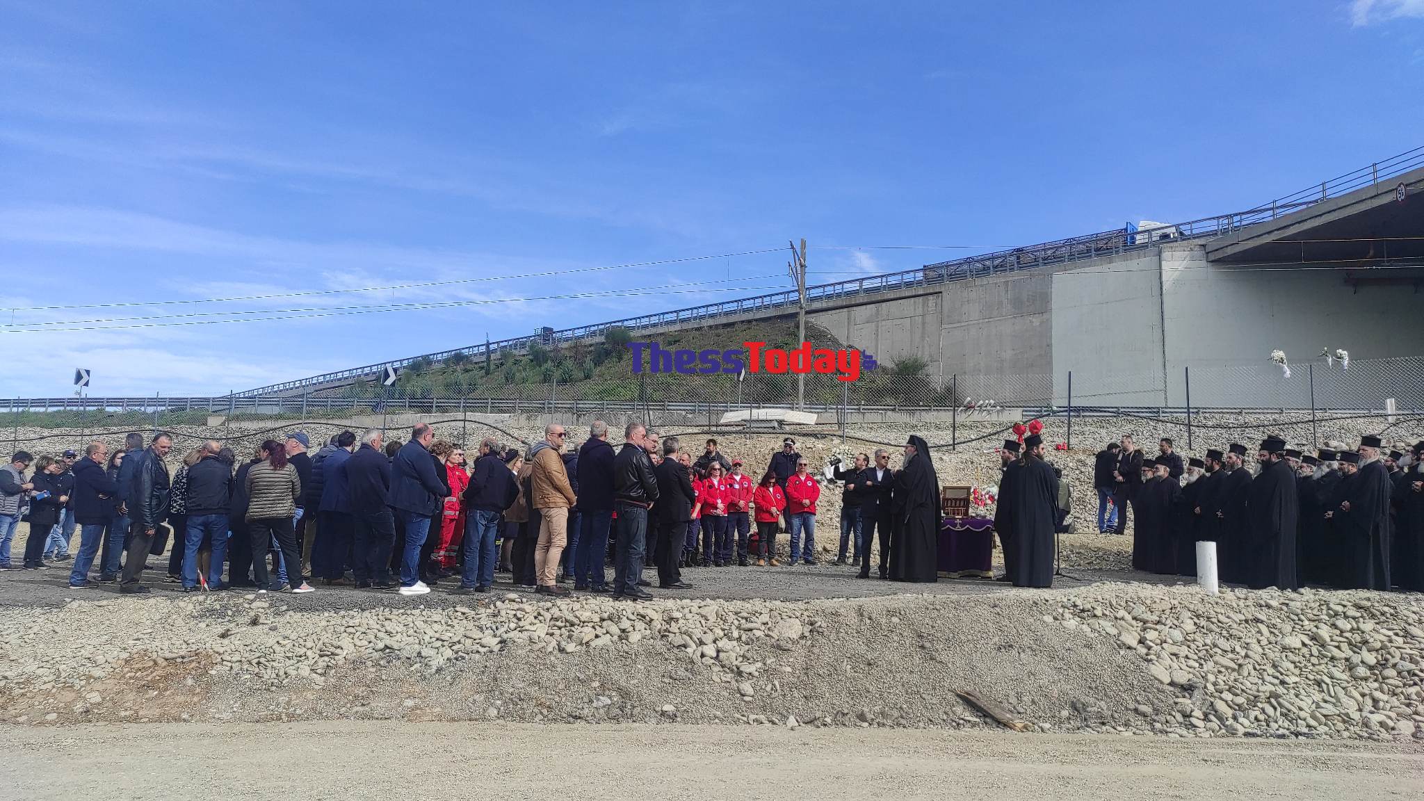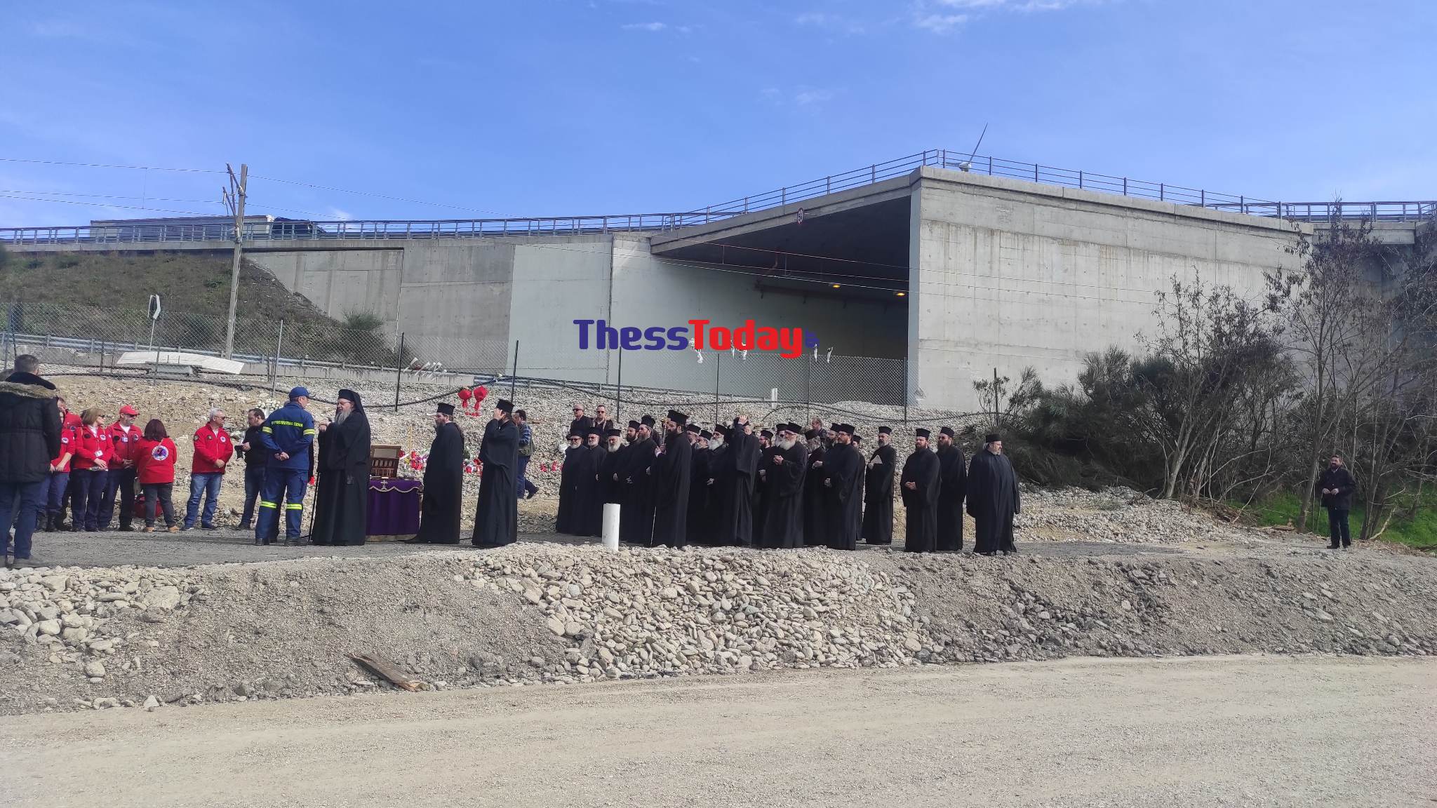 Το τρισάγιο τελέστηκε εννέα ημέρες μετά την τραγωδία που στοίχησε τη ζωή σε 57 ανθρώπους από τον Μητροπολίτη Λαρίσης και Τυρνάβου Ιερώνυμο. Στον τόπο του πολύνεκρου δυστυχήματος έφθασαν από τη Λάρισα πολίτες αλλά και τοπικοί φορείς.