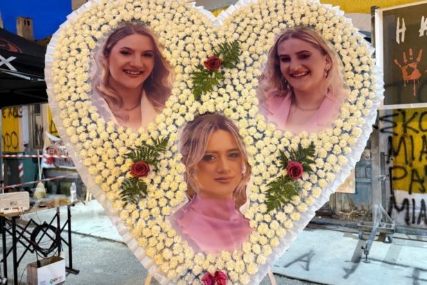 Όπως μεταδίδει το trikalaola, μια μεγάλη καρδιά με λευκά λουλούδια με τις φωτογραφίες από τα αγγελούδια που χάθηκαν στα Τέμπη δέσποζε στο σταθμό του ΟΣΕ της Καλαμπάκας, όπου γίνεται η μεγάλη συγκέντρωση και το τρισάγιο, παρουσία και των οικογενειών των κοριτσιών.