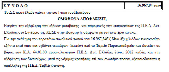 Στο παραπάνω ποσό προσθέστε 1.639,23 ευρώ κόστισε η μετάβαση των δύο παρατηρητών της ΠΕΔ.