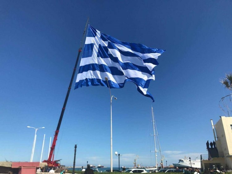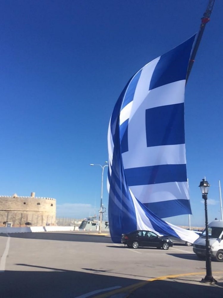 Λίγο μετά το τέλος της παρέλασης στο Ηράκλειο υψώθηκε μία τεράστια ελληνική σημαία με συνολικό εμβαδόν 1.200 τ.μ.Η σημαία κατασκευάστηκε σε εργοστάσιο της Θεσσαλονίκης και υψώθηκε με ειδικό γερανό σε ύψος 60 μ. μπροστά από το Ενετικό Κάστρο του Ηρακλείου με πρωτοβουλία ενός επιχειρηματία. Σκοπός του όπως είπε, είναι η τόνωση του ηθικού των Ελλήνων. Η σημαία αυτή έσπασε το προηγούμενο ρεκόρ, μιας άλλης σημαίας που μέχρι πέρσι υψωνόταν στο ίδιο σημείο και είχε εμβαδόν 750 τ.μ.