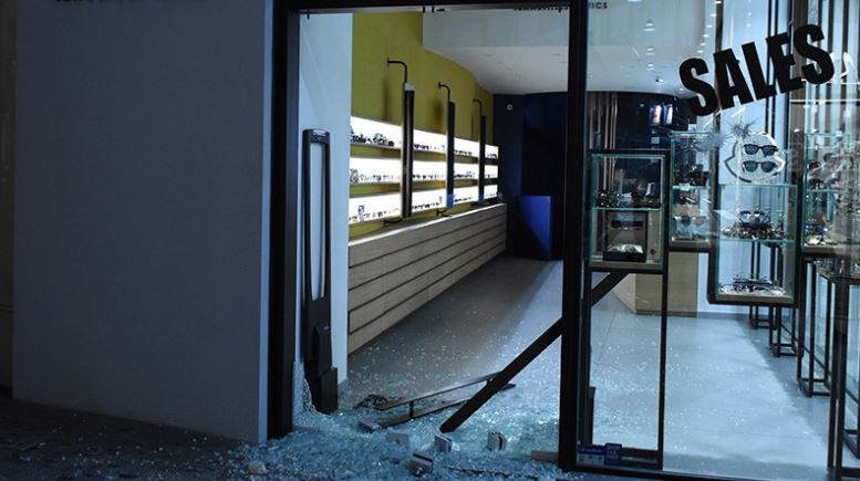 Γυαλιά-καρφιά τα έκαναν στην οδό Ερμού οι αντιεξουσιαστές που πήραν μέρος στην πορεία συμπαράστασης στη φυλακισμένη Ηριάννα Β.Λ.
