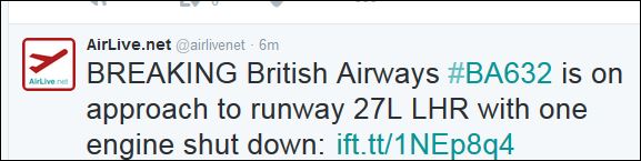 Σύμφωνα με το airlive.net, ο ένας από τους κινητήρες του αεροσκάφους έχει σβήσει.