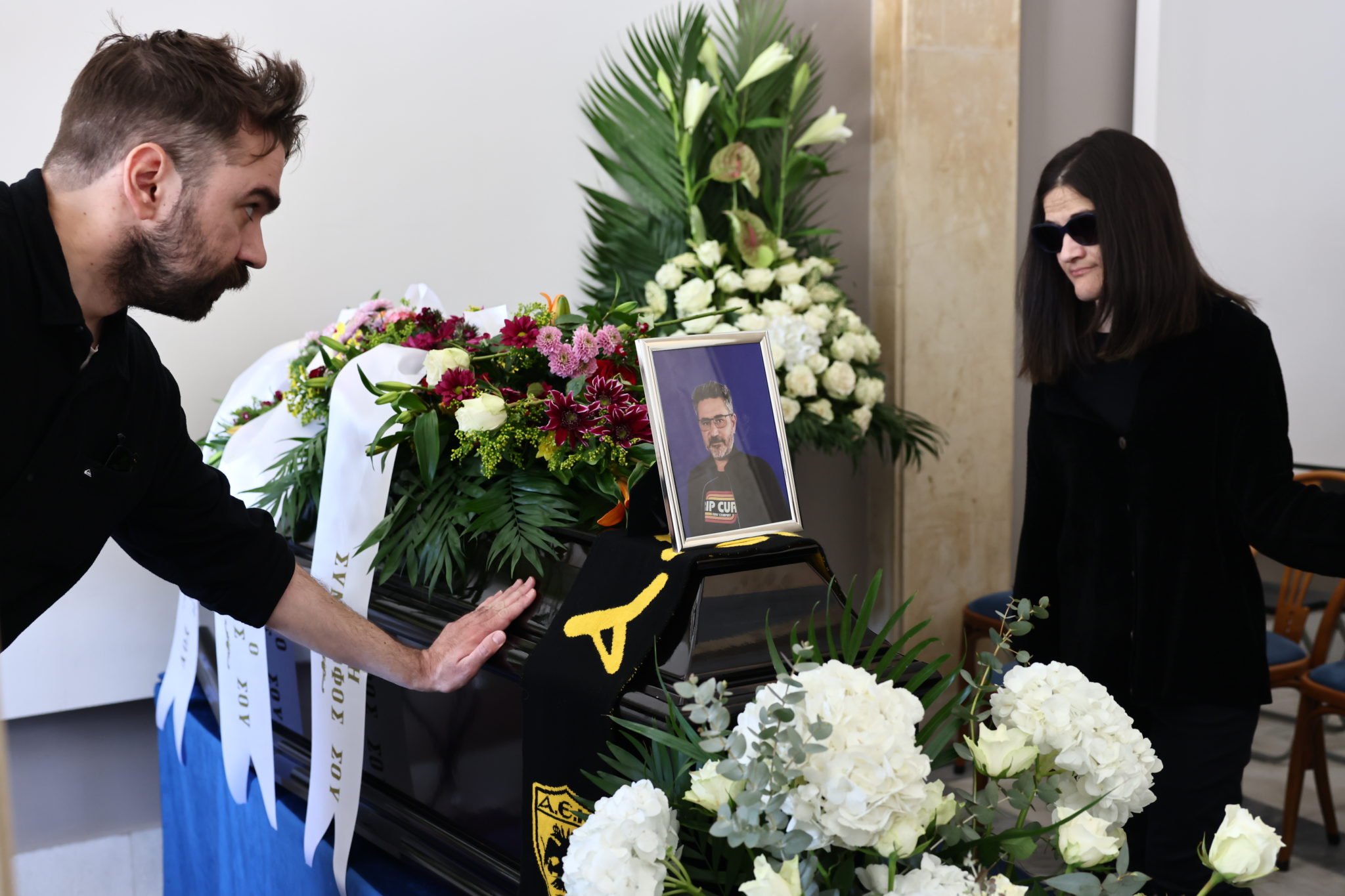 Σε κλίμα βαθιάς συγκίνησης τελείται αυτή την ώρα η κηδεία του γιου της Θεανώς Φωτίου, Βασίλη Ρίζου, ο οποίος πέθανε ξαφνικά την Μ. Δευτέρα (6/4) σε ηλικία 48 ετών.