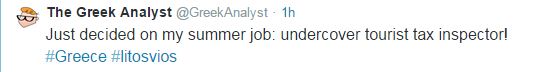 Το The Greek Analyst γράφει στο λογαριασμό του στο twitter: “Μόλις αποφάσισα τι δουλειά θα κάνω το καλοκαίρι: Μυστικός εφοριακός”