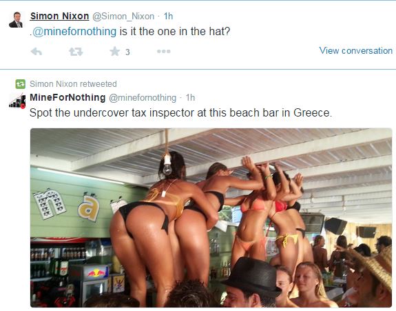 Ανάμεσα στα σχόλια που ξεχωρίζουν είναι αυτό του δημοσιογράφου της Wall Street Journal, Simon Nixon, ο οποίος έχει κάνει retweet μία φωτογραφία που δείχνει ένα ελληνικό beach bar “ψάχνοντας” δήθεν ποιος είναι ο μυστικός πράκτορας.