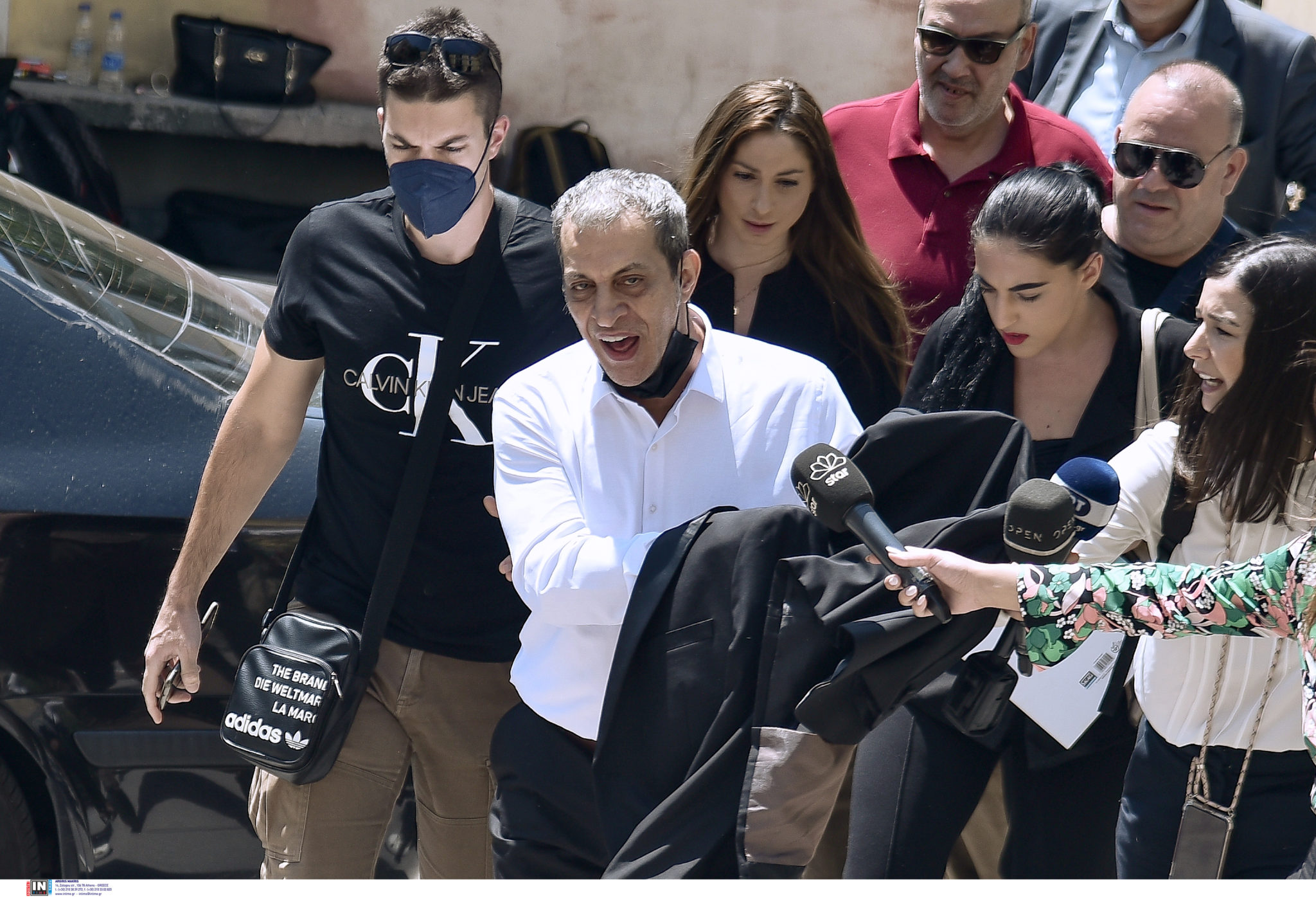 Ο τραγουδιστής προσερχόμενος απευθύνθηκε με ειρωνικό ύφος στους δημοσιογράφους λέγοντας τους «βρε καλώς τα παιδάκια. Τι κάνετε παιδιά; Καλά είστε;». Είχε φροντίσει να βάλει το σακάκι του πάνω στα χέρια ώστε να μην φαίνονται οι χειροπέδες.