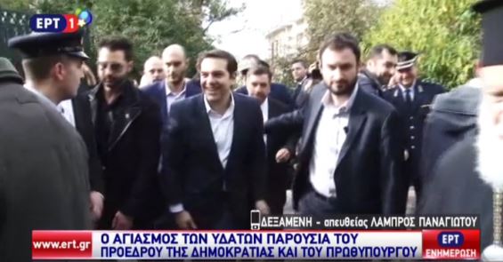 Ο Πρωθυπουργός παρακολούθησε τον Αγιασμό των υδάτων μαζί με τον Πρόεδρο της Δημοκρατίας στην Δεξαμενή.