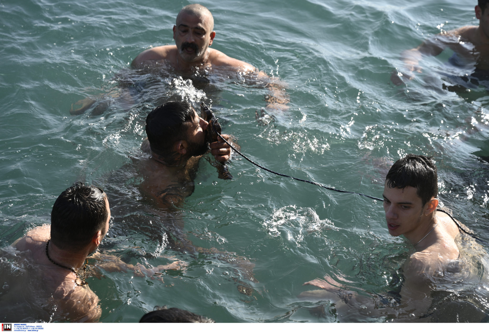 Συνολικά 11 άτομα πήραν θέση σε δύο σκάφη του Λιμενικού και έπεσαν στο νερό για να πιάσουν τον Σταυρό. Ανάμεσά τους και ένα παιδί.