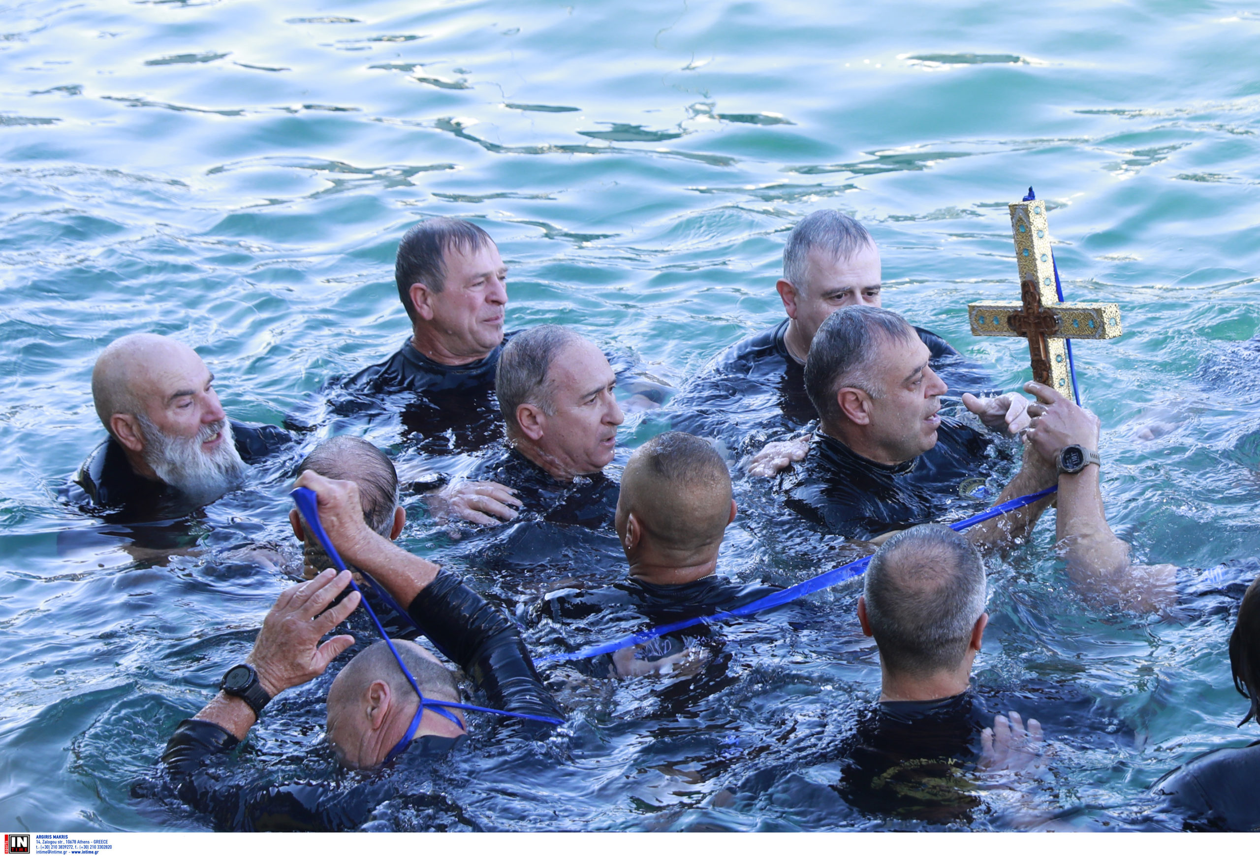 Μέλη του Συνδέσμου Ελλήνων Βατραχανθρώπων, απόστρατοι και εν ενεργεία, άνδρες των ΟΥΚ έπεσαν στα νερά του Σαρωνικού, όπως κάθε χρόνο για να λάβουν την ευλογία του Τίμιου Σταυρού.