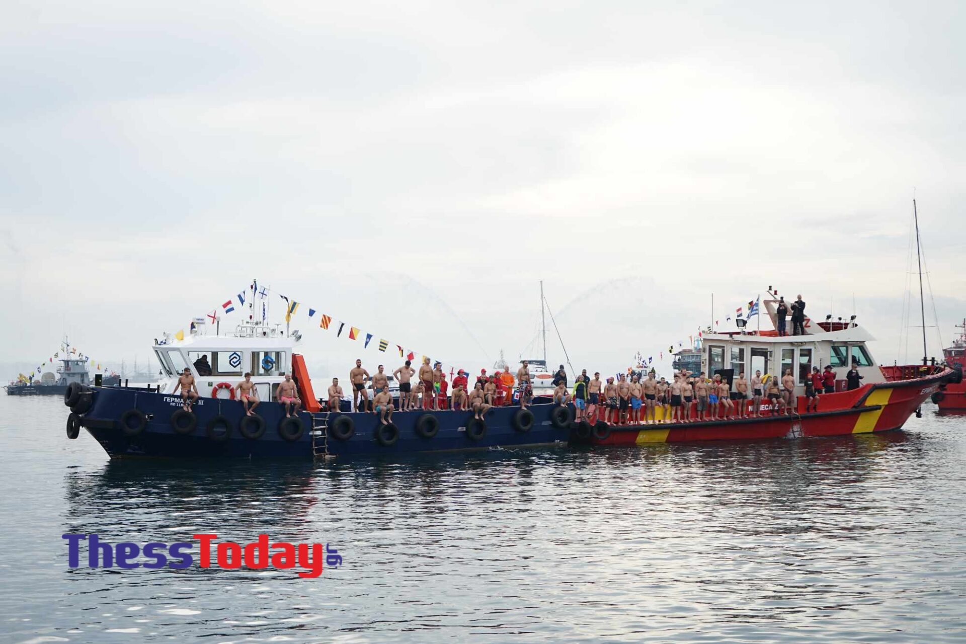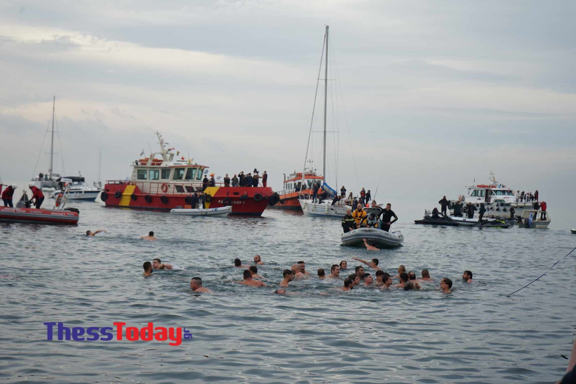 Για να πιάσουν τον σταυρό έπεσαν στα κρύα νερά τουλάχιστον 35 κολυμβητές, ανάμεσά τους και γυναίκες, ενώ η τελετή έγινε για πρώτη φορά μετά από χρόνια, στην προβλήτα Α’ του λιμανιού, έπειτα από απόφαση του μητροπολίτη Φιλόθεου.