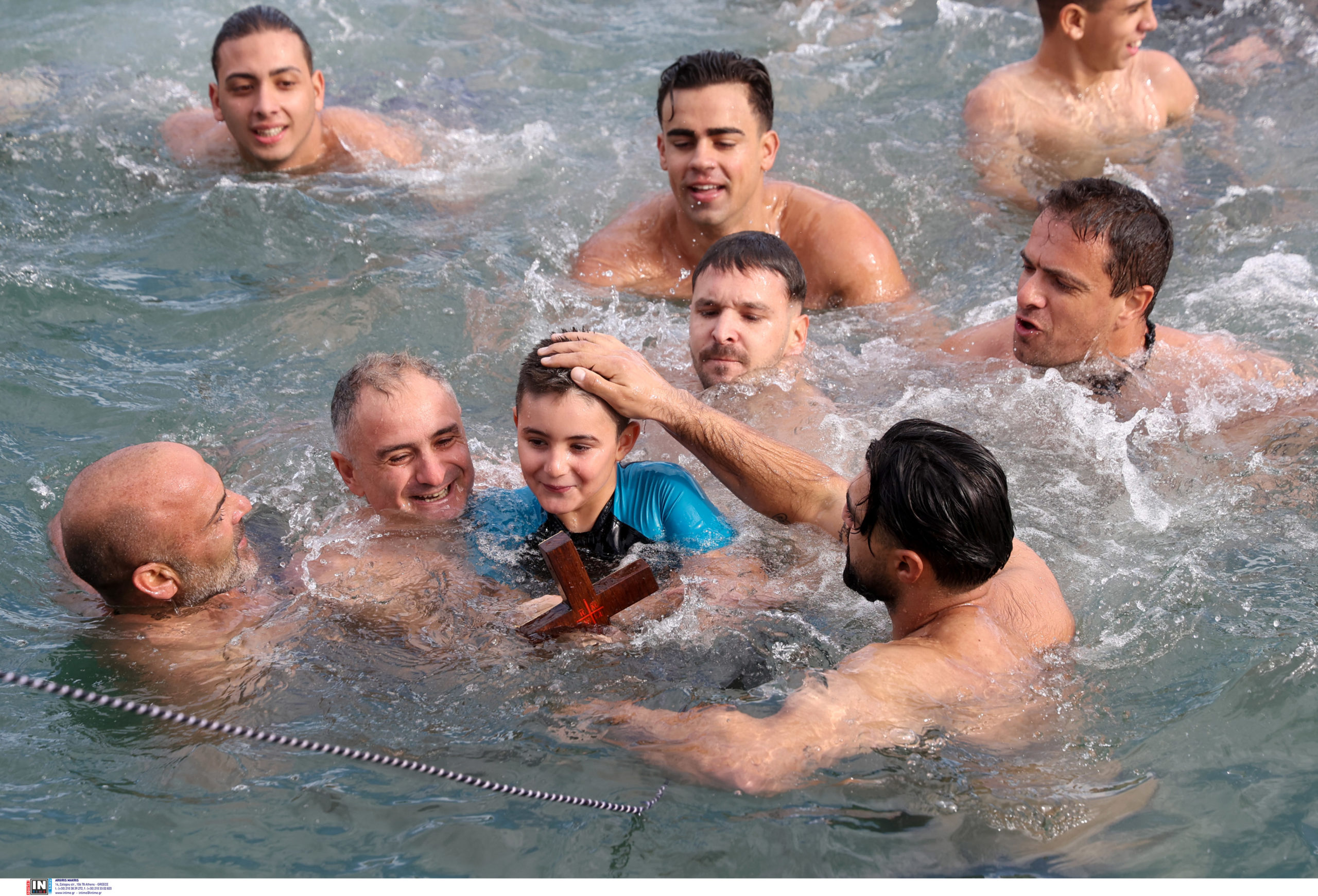 Συγκινητικές στιγμές στο Φανάρι, καθώς αρκετοί ήταν αυτοί που βούτηξαν για να πιάσουν τον σταυρό.