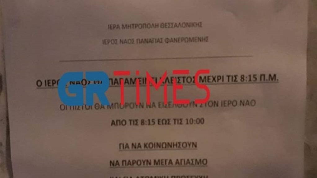 Από τις 6 το πρωί της Τετάρτης έχουν συγκεντρωθεί πιστοί έξω από τον κλειδωμένο Ιερό Ναό Παναγίας Φανερωμένης. Όπως ενημέρωσε εκπρόσωπος του συγκεκριμένου ναού οι θέσεις έχουν καταληφθεί ήδη και θα ανοίξουν οι πόρτες για τους πιστούς στις 8.30 π.μ. ώστε να μπορέσουν να πάρουν τον αγιασμό σε μπουκαλάκια.