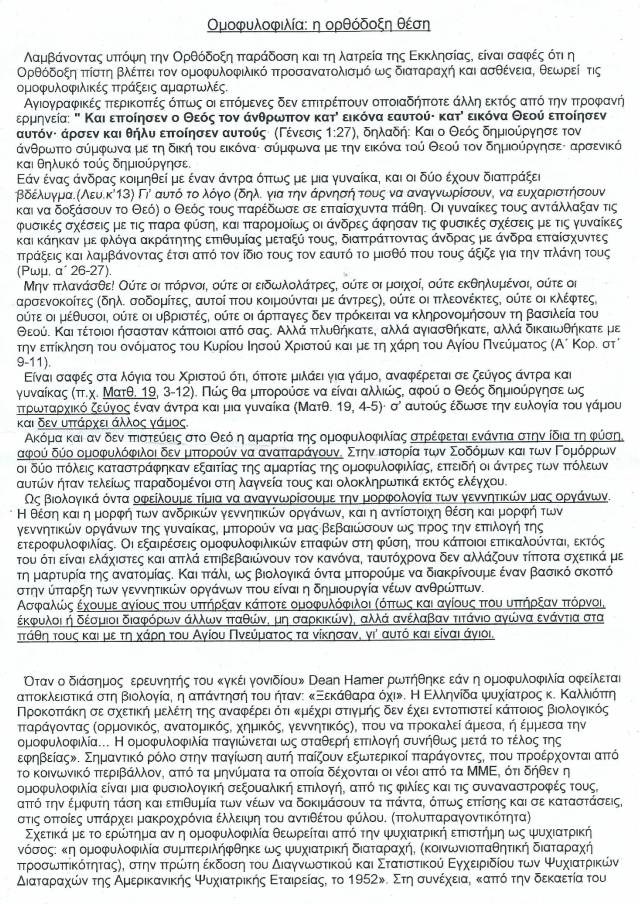 Μήνυση για διανομή φυλλαδίου με ομοφοβικό περιεχόμενο κατατέθηκε σε βάρος Θεολόγου που διδάσκει σε Σχολείο Δευτεροβάθμιας Εκπαίδευσης της Ξάνθης. Στο φυλλάδιο, η ομοφυλοφιλία παρουσιάζεται ως ασθένεια και διαταραχή.Η μήνυση έχει κατατεθεί στο Τμήμα Αντιμετώπισης Ρατσιστικής Βίας της ΕΛΑΣ και έχει διαβιβαστεί αρμοδίως στις διωκτικές αρχές της Ξάνθης, προκειμένου να ενεργήσουν. Την έχουν καταθέσει το Ελληνικό Παρατηρητήριο των Συμφωνιών του Ελσίνκι, το Τμήμα Σεξουαλικού Προσανατολισμού και Ταυτότητας Φύλου του Ελληνικού Παρατηρητηρίου των Συμφωνιών του Ελσίνκι, η Πολύχρωμη Πολυπολιτισμική Ομπρέλα Ξάνθης και το Φεστιβάλ Υπερηφάνειας Αθήνας Athens Pride.Το ζήτημα απασχολεί την εκπαιδευτική κοινότητα ενώ η Πρόεδρος της ΕΛΜΕ Ξάνθης, Μαρία Λουκοπούλου, αναφέρει ότι το Δ.Σ. της ΕΛΜΕ θα ασχοληθεί με το θέμα καθώς η Ένωση είναι πάντα αντίθετη σε κάθε εκδήλωση ρατσιστικής συμπεριφοράς και συμμετέχει σε όλες τις αντίστοιχες δράσεις ενάντια στο ρατσισμό και θα εξετάσει τι έχει συμβεί προκειμένου να πάρει θέση.Τι αναφέρει το φυλλάδιοΠρόκειται για φυλλάδιο που έχει διανεμηθεί σε όλους τους χριστιανούς μαθητές και μαθήτριες μιας τάξης του σχολείου, το περιεχόμενο του οποίου χαρακτηρίζεται από τους μηνυτές, στο σύνολό του και με πρόθεση ομοερωτοφοβικό, καθώς μεταξύ άλλων αποκαλεί την ομοφυλοφιλία προσβλητικά “διαταραχή” και “ασθένεια,” που «δημιουργεί πρόσφορο έδαφος για την παιδεραστία” ενώ υποστηρίζεται ότι τα ομοερωτικά άτομα “παρουσιάζουν πολύ συχνότερα κατάθλιψη, απόπειρες αυτοκτονίας, γενικευμένη αγχώδη διαταραχή, διαταραχή διαγωγής, χρήση ουσιών, αλκοολισμό… αυξημένο κίνδυνο για σεξουαλικά μεταδιδόμενα νοσήματα” ή ότι «η ομοφυλοφιλία ευθύνεται για την τρομακτική αύξηση του καρκίνου του στόματος σε ποσοστό 80%.”