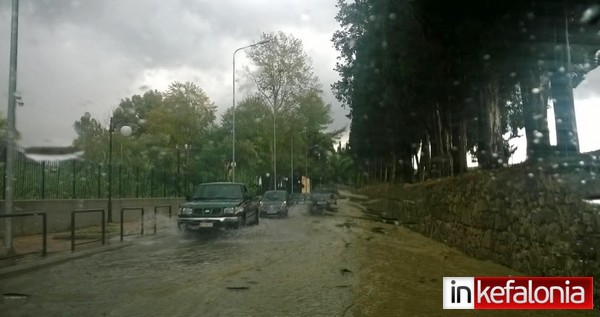 Αυτή την ώρα το Αργοστόλι της Κεφαλονιάς είναι χωρίς ηλεκτρικό ρεύμα, ενώ έχουν πλημμυρίσει σπίτια και καταστήματα.