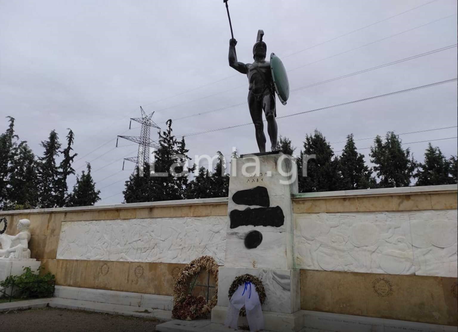 Μπροστά σε ένα αποτρόπαιο θέαμα βρέθηκαν οι λιγοστοί επισκέπτες στο μνημείο του Λεωνίδα στις Θερμοπύλες ανήμερα της 28ης Οκτωβρίου. Άγνωστος ή άγνωστοι έβαψαν με μαύρη μπογιά την μαρμάρινη πλάκα κάτω ακριβώς από το άγαλμα του Λεωνίδα.