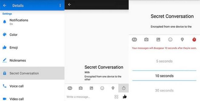 Αυτό που πρέπει να κάνει κανείς, είναι να επεξεργαστεί τις ρυθμίσεις του messenger ενεργοποιώντας την “Απόρρητη συνομιλία” και στέλνοντας το μήνυμά του στον παραλήπτη. Αυτό που ουσιαστικά κάνει η συγκεκριμένη λειτουργία είναι να διαγράφει το μήνυμα που έχεις σταλεί μέσα σε 5′, 10′ ή και 30′ δευτερόλεπτα από την ανάγνωσή του από τον παραλήπτη.