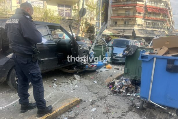Περίπου στις 16:30 ένα αυτοκίνητο εξετράπη της πορείας του στη συμβολή των οδών Δελφών με Μαρτίου, με αποτέλεσμα να πέσει πάνω σε κάδους.
