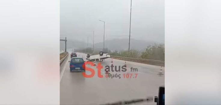 Κάτω από αδιευκρίνιστες συνθήκες, η οδηγός έχασε τον έλεγχο του οχήματος με αποτέλεσμα αυτό να τουμπάρει στη μεσαία λωρίδα του δρόμου του Δερβενίου.