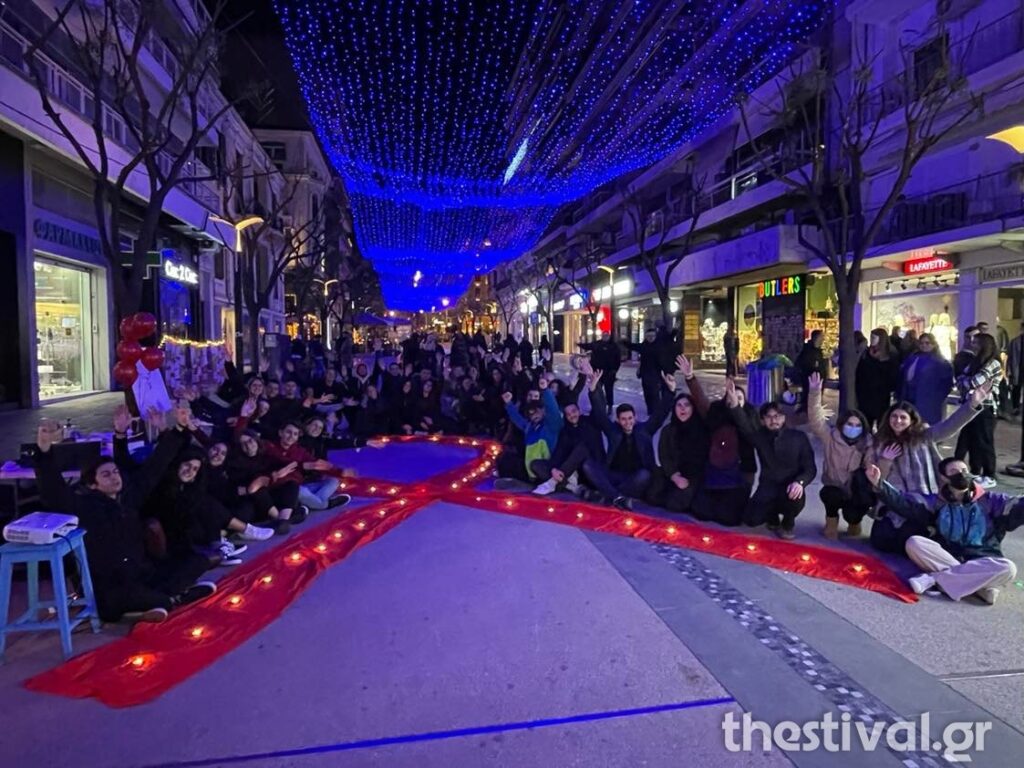 Την κορδέλα (red ribbon) σύμβολο της επίγνωσης και της επαγρύπνησης για το AIDS σχημάτισαν με κόκκινα κεριά το βράδυ της Τετάρτης στον πεζόδρομο της Αγίας Σοφίας, με αφορμή την Παγκόσμια Ημέρα κατά της νόσου.