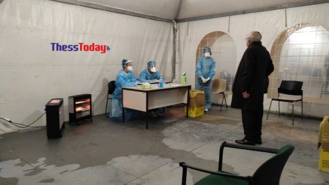 Μετά το πέρας της τελετής ο δήμαρχος Θεσσαλονίκης πραγματοποίησε αυτοψία στις σκηνές για rapid test, στέλνοντας τι μήνυμα ότι αυτή η μάχη θα κερδηθεί.