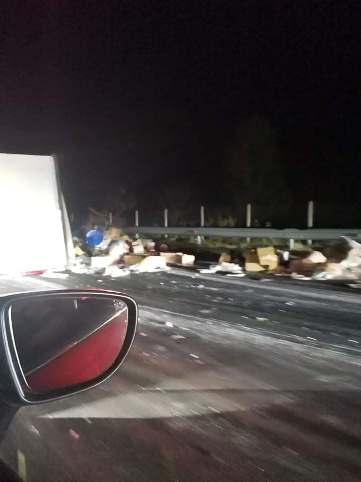 Ανατροπή νταλίκας σημειώθηκε το βράδυ της Κυριακής στην Εγνατία Οδό, στο ύψος των λιμνών, στο ρεύμα προς Θεσσαλονίκη.