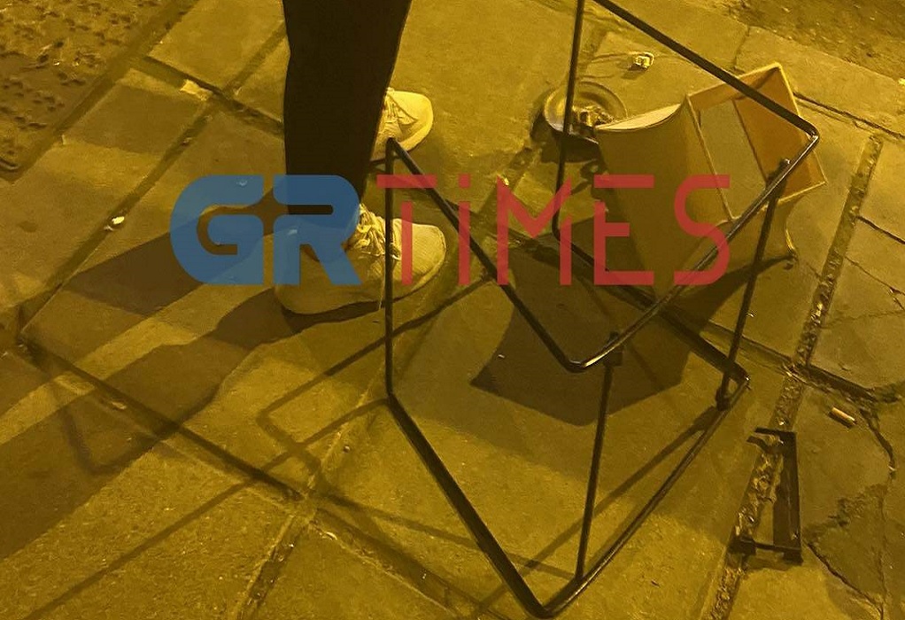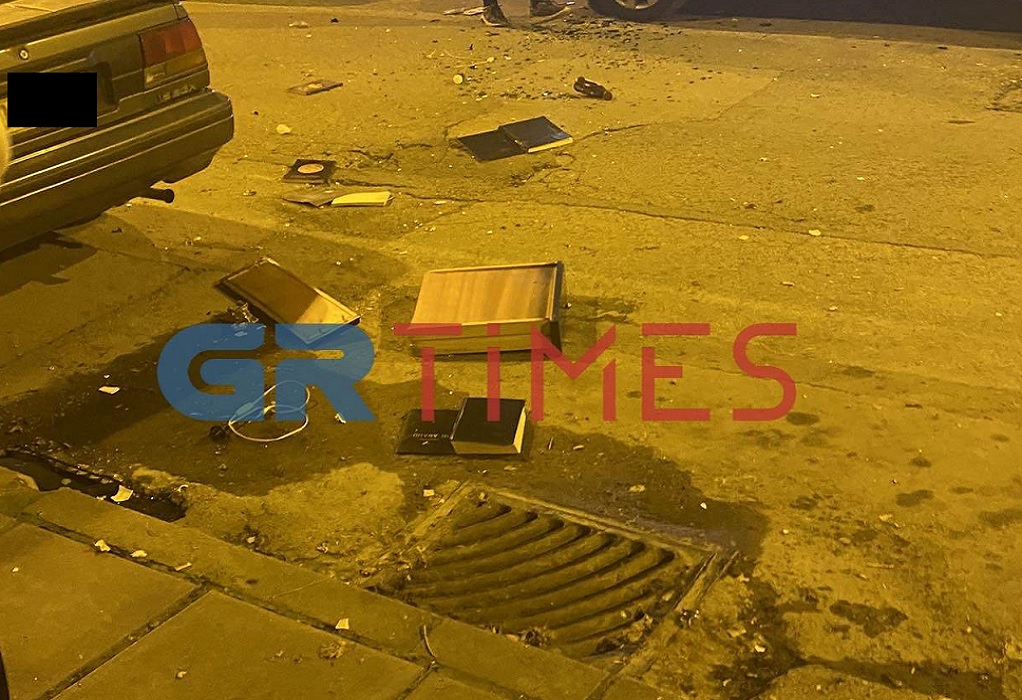 Παράλληλα πετούσε αντικείμενα και κατάφερε να σπάσει την τζαμαρία ενός κρεοπωλείου, ένα παρμπρίζ ΙΧ και προκάλεσε φθορές σε άλλα αυτοκίνητα.