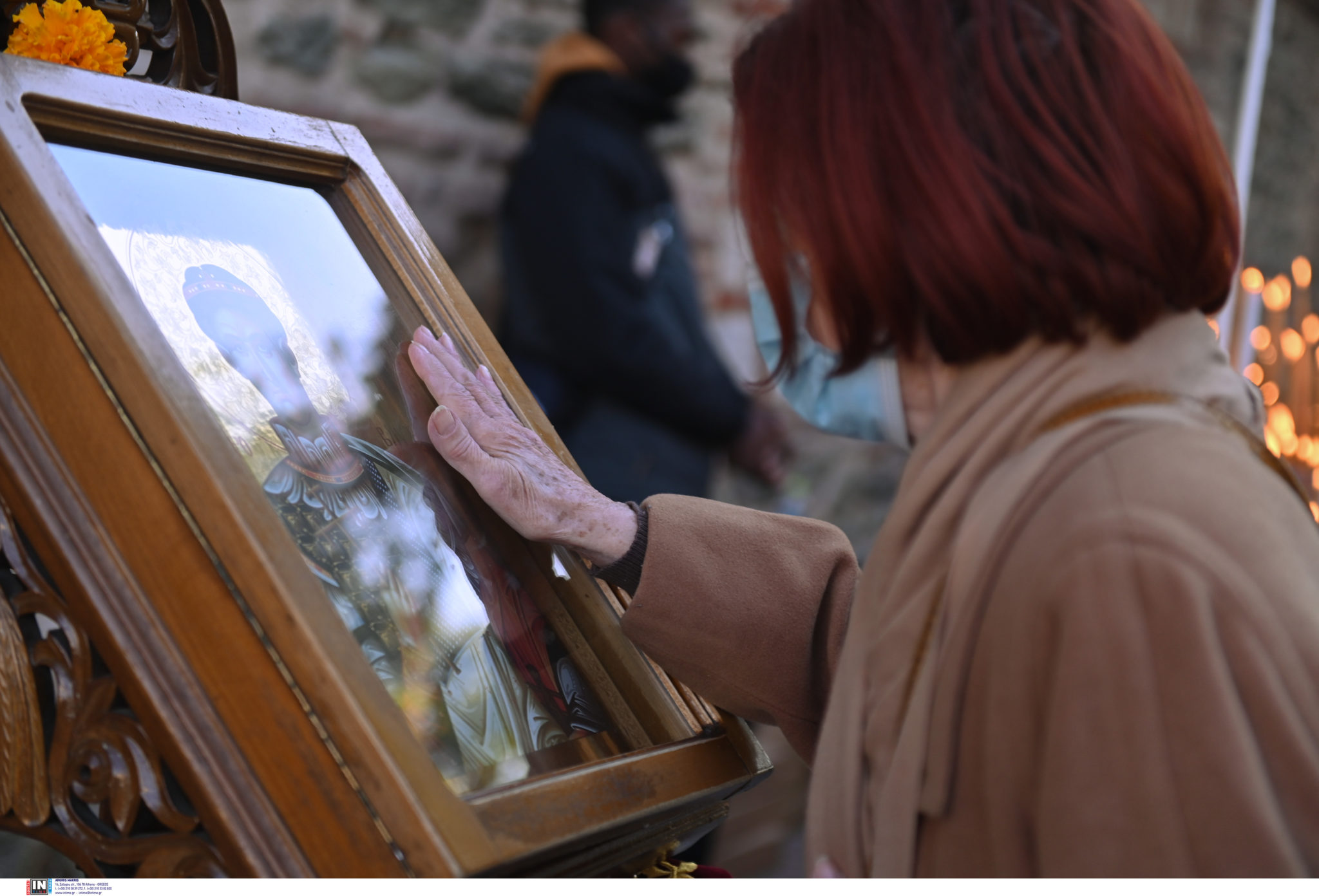 Ασπάζονται εικόνες χωρίς τη μάσκα