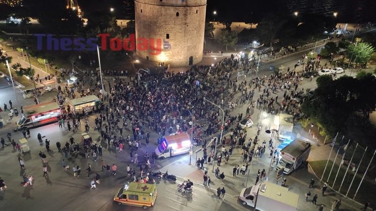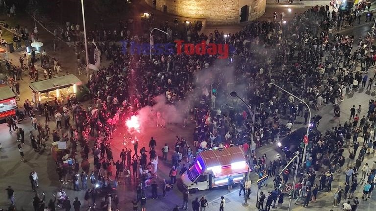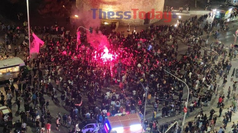 Θεσσαλονίκη: Ασπρόμαυρο πάρτι στον Λευκό Πύργο για τον ΠΑΟΚ – ΦΩΤΟ