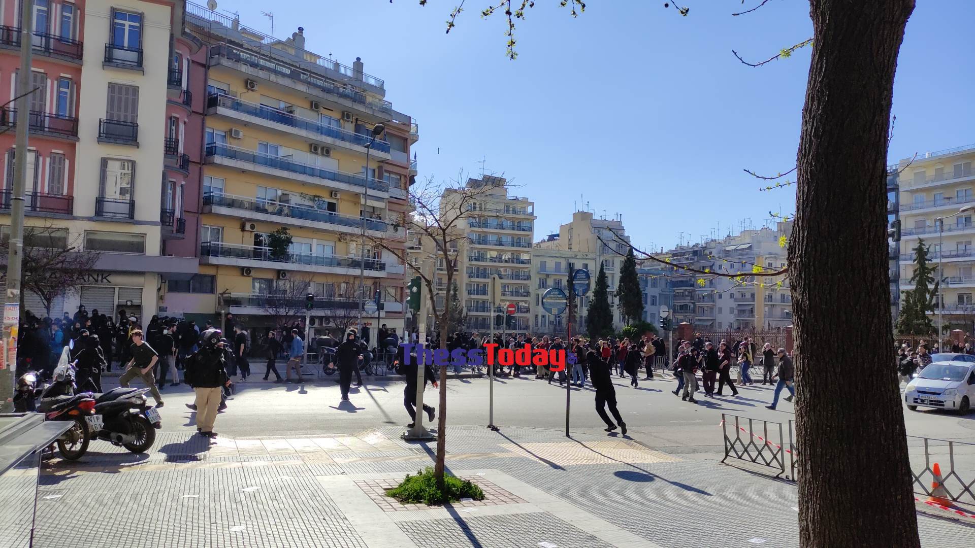 Συγκεκριμένα, σύμφωνα με πληροφορίες από το Thesstoday.gr μετά το πέρας της κινητοποίησης για την τραγωδία που σημειώθηκε στα Τέμπη, η οποία και έληξε μπροστά από το ΥΜΑΘ, κουκουλοφόροι πέταξαν πέτρες και αντικείμενα προς τα ΜΑΤ που βρίσκονταν εντός του υπουργείου.
