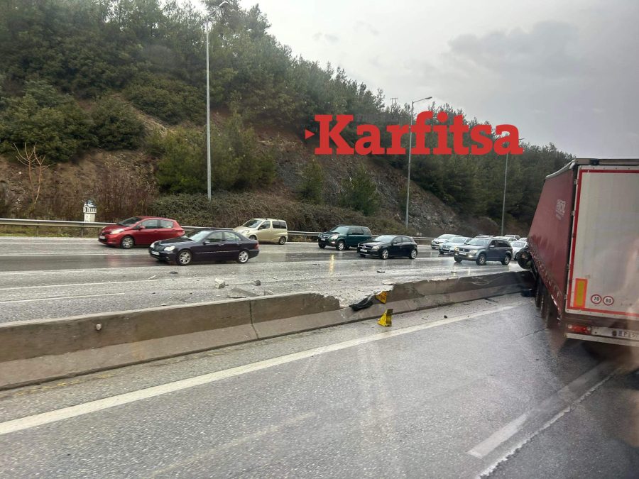Συγκεκριμένα, κάτω από άγνωστες συνθήκες η νταλίκα δίπλωσε με αποτέλεσμα να προκληθεί κυκλοφοριακό «κομφούζιο» και στα δυο ρεύματα του Δερβένι. Επίσης, επί τόπου πηγαίνει περιπολικό της τροχαίας, αλλά και ασθενοφόρο για τυχόν τραυματίες. Από την πρόσκρουση της νταλίκας το τμήμα του τσιμεντένιο κιγκλιδώματος έσπασε.