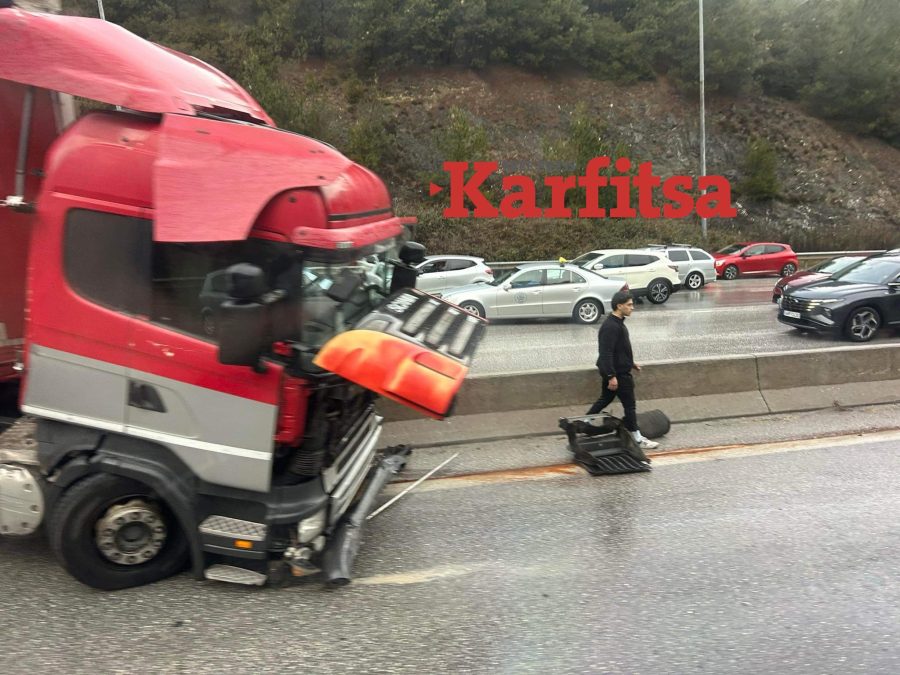 Συγκεκριμένα, κάτω από άγνωστες συνθήκες η νταλίκα δίπλωσε με αποτέλεσμα να προκληθεί κυκλοφοριακό «κομφούζιο» και στα δυο ρεύματα του Δερβένι. Επίσης, επί τόπου πηγαίνει περιπολικό της τροχαίας, αλλά και ασθενοφόρο για τυχόν τραυματίες. Από την πρόσκρουση της νταλίκας το τμήμα του τσιμεντένιο κιγκλιδώματος έσπασε.