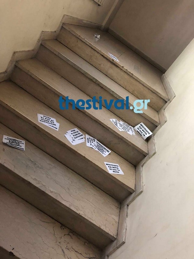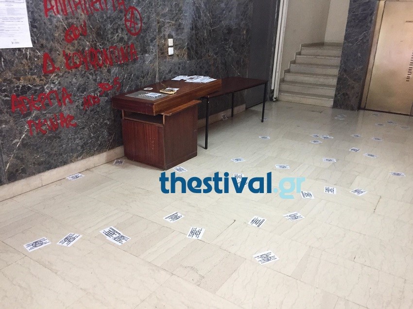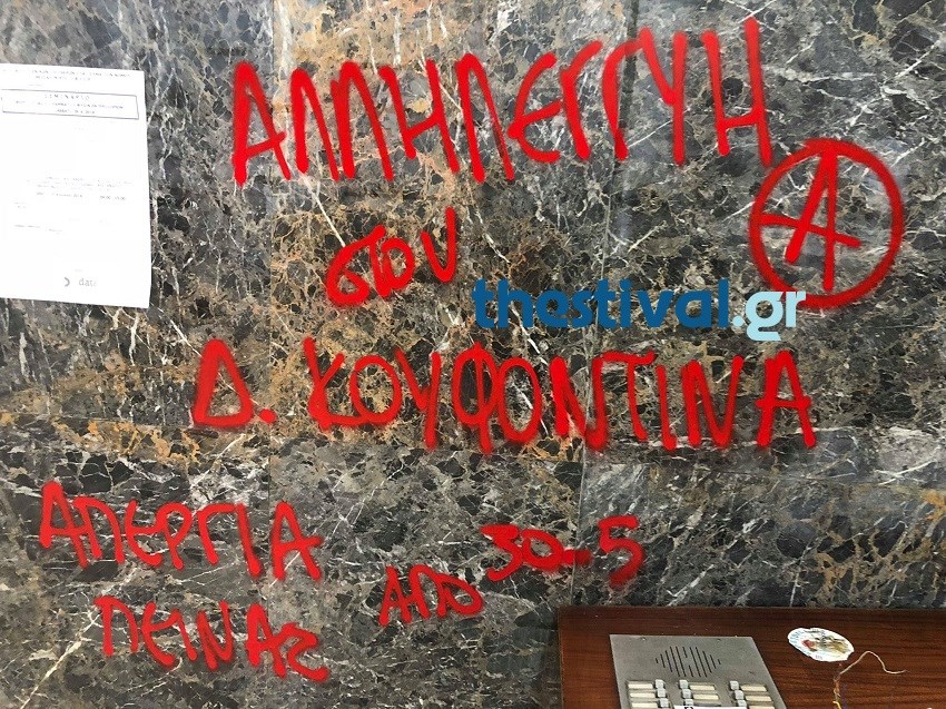 Σύμφωνα με πληροφορίες, τέσσερα άτομα μπήκαν στο κτίριο και έγραψαν με σπρέι συνθήματα υπέρ του Δημήτρη Κουφοντίνα, πέταξαν τρικάκια και στη συνέχεια αποχώρησαν.