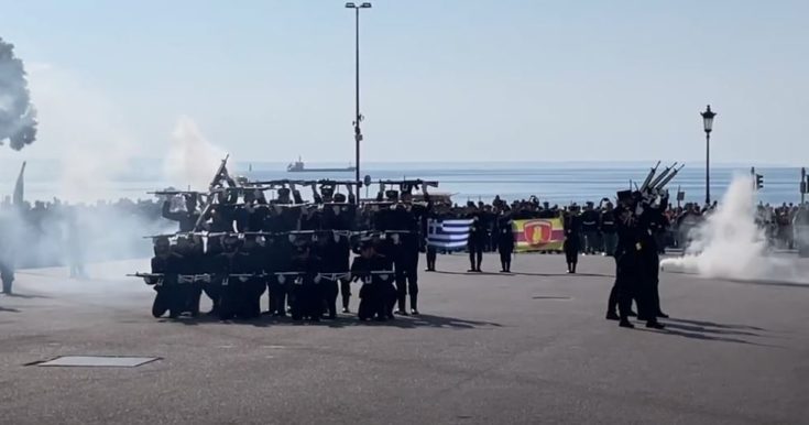 Με εθνική υπερηφάνεια «πλημμύρισε» η πλατεία Αριστοτέλους στην Θεσσαλονίκη, κατά τη στρατιωτική επίδειξη της Στρατιωτικής Σχολής Αξιωματικών Σωμάτων (ΣΣΑΣ) και των Μουσικών τριών κλάδων των ενόπλων δυνάμεων.