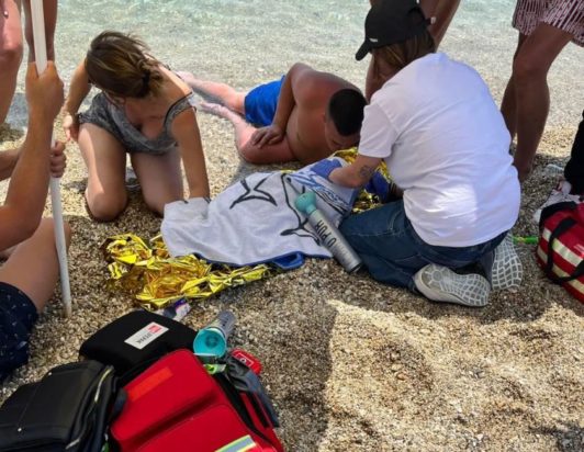 Στο σημείο έσπευσαν μέσα σε ελάχιστα λεπτά και άλλοι διασώστες και με τη βοήθεια όλων το παιδί επανήλθε άμεσα στη ζωή. Στη συνέχεια, σταθεροποιήθηκε και του δόθηκε οξυγόνο, ενώ οι διασώστες βρίσκονταν σε συνεχή επικοινωνία με τον γιατρό του ΕΚΑΒ.