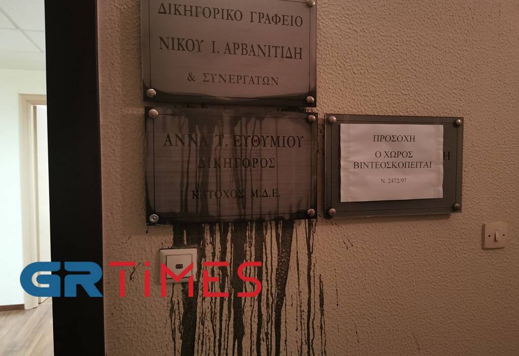 Τα άτομα εισήλθαν στο κτίριο που βρίσκεται στο κέντρο της πόλης και μόλις έφτασαν έξω από το γραφείο πέταξαν μαύρη μπογιά, τόσο στην πόρτα, όσο και στην πινακίδα που αναγράφει το όνομα και τη δικηγορική ιδιότητα της κα. Ευθυμίου.